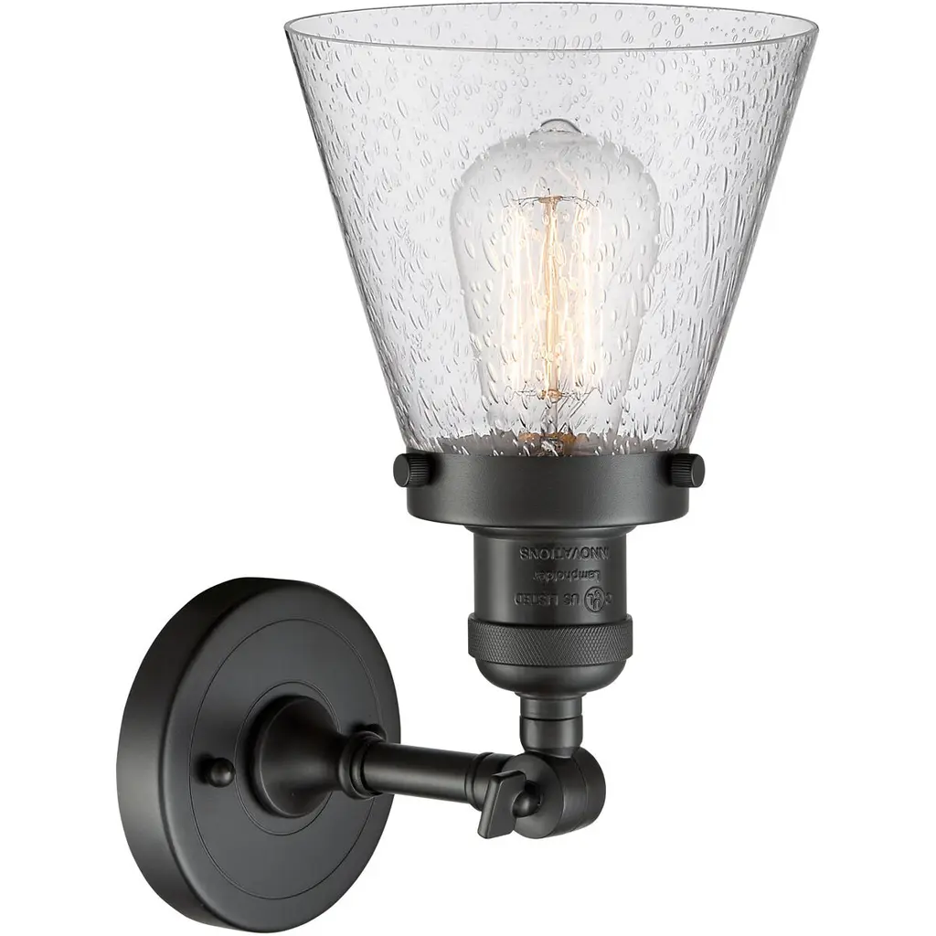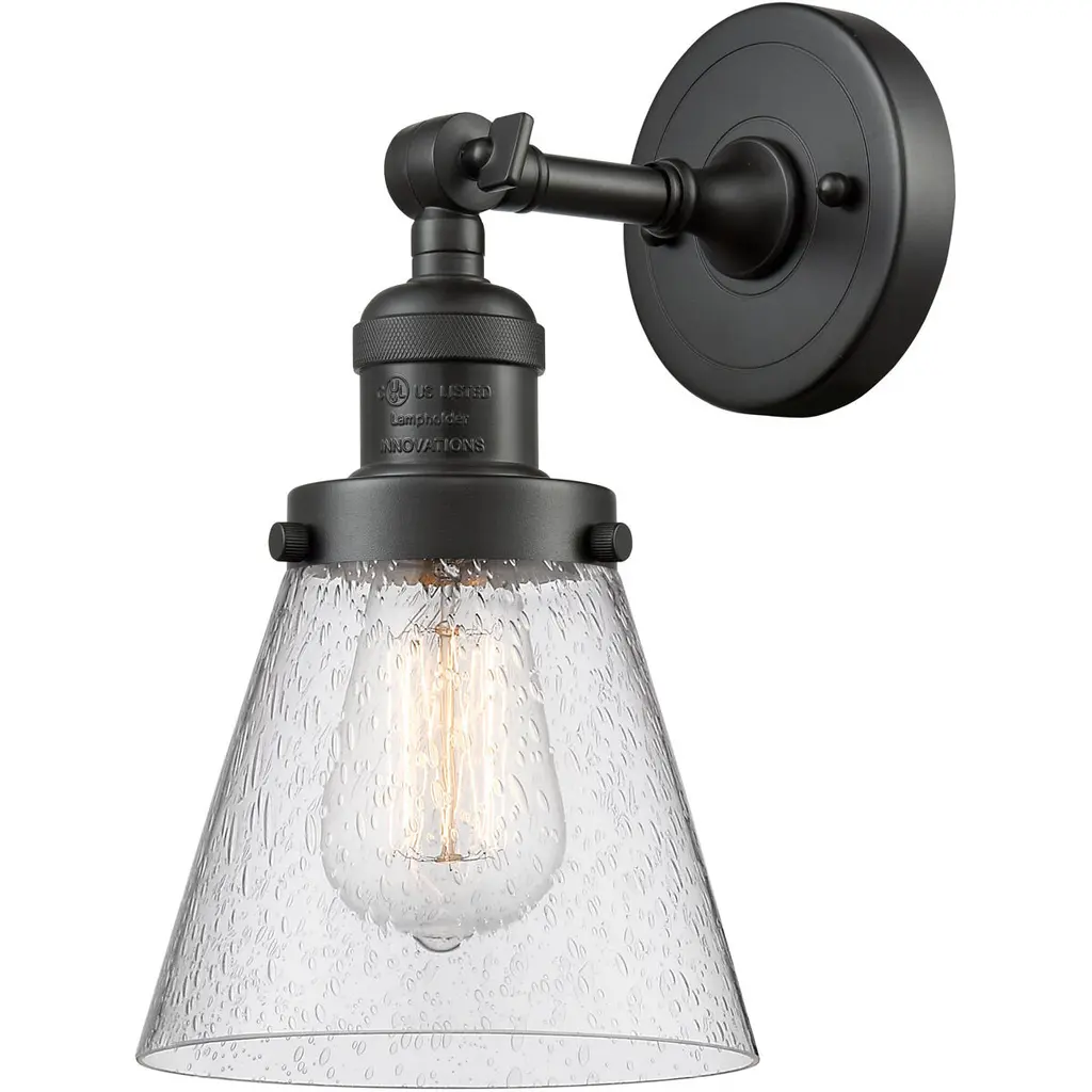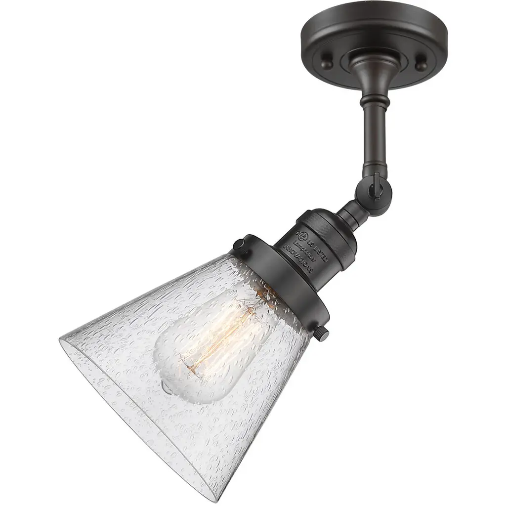 Franklin Restoration Small Cone 1 Light 6 Inch Oil Rubbed Bronze Semi-Flush Mount Ceiling Light In Seedy Glass, Franklin Restoration