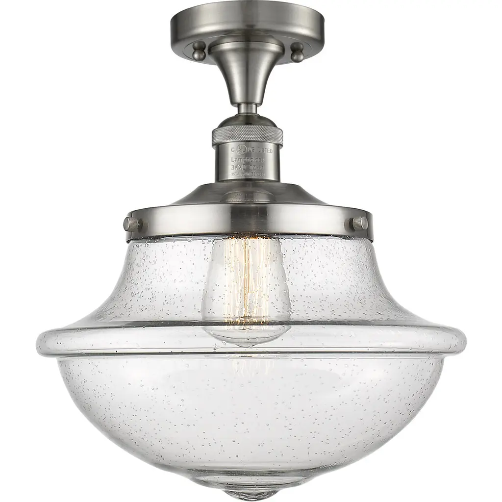 Franklin Restoration Small Cone 1 Light 7 Inch Polished Nickel Semi-Flush Mount Ceiling Light In Seedy Glass, Franklin Restoration