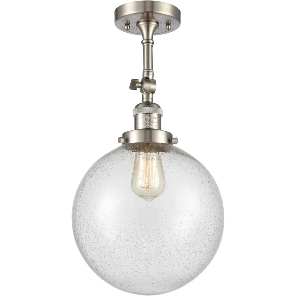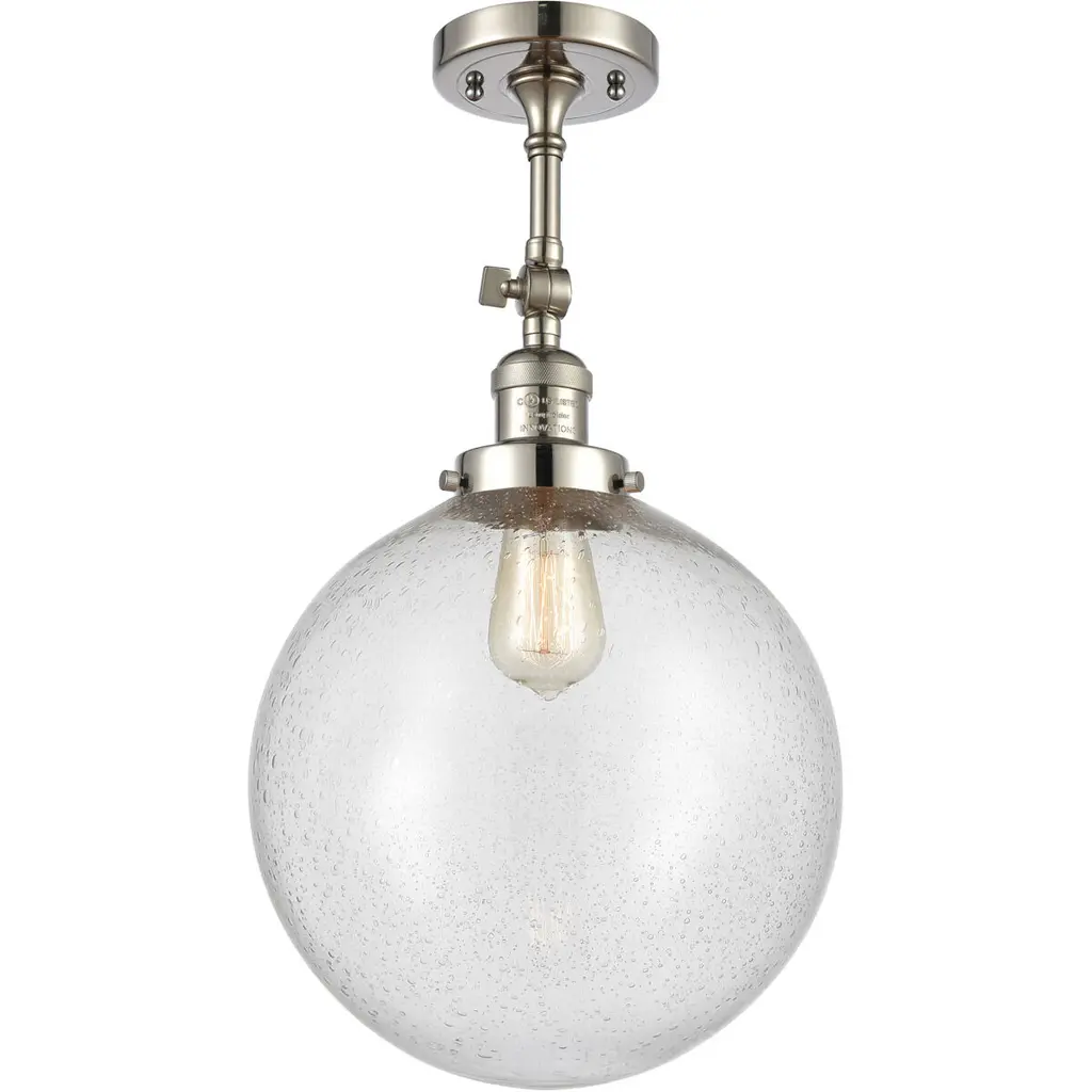 Franklin Restoration X-Large Beacon Led 10 Inch Polished Chrome Semi-Flush Mount Ceiling Light In Seedy Glass, Franklin Restoration
