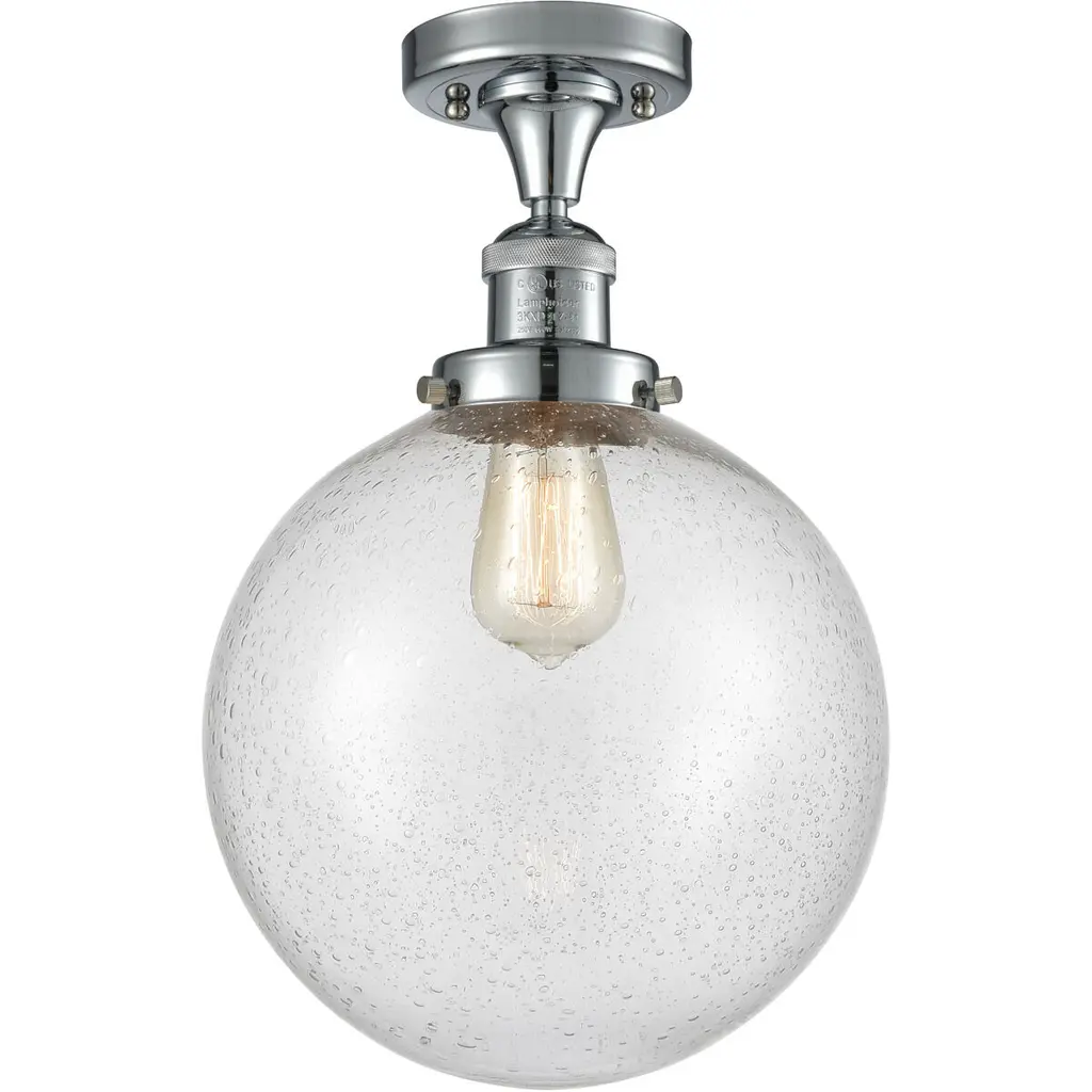 Franklin Restoration X-Large Beacon Led 10 Inch Polished Nickel Semi-Flush Mount Ceiling Light In Seedy Glass, Franklin Restoration