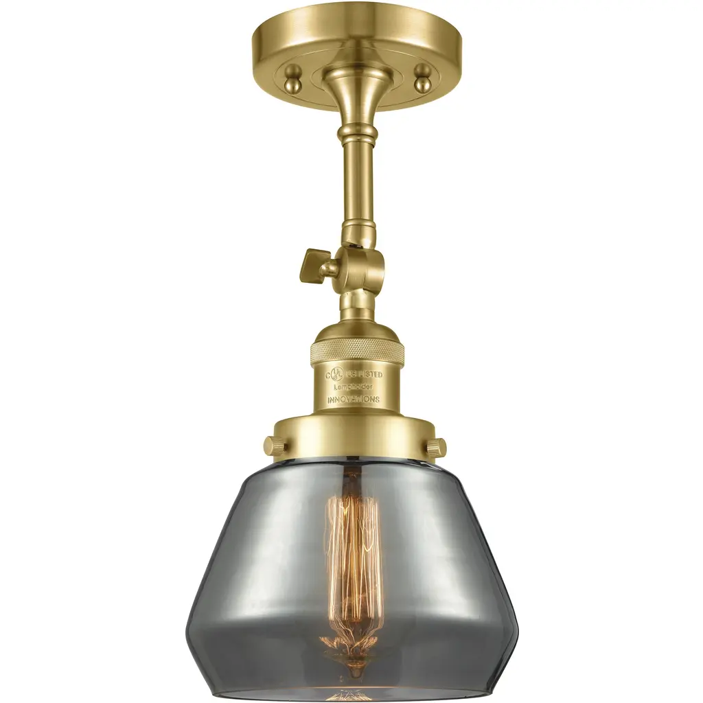 The X-Large Cone 1 Light Semi-Flush Mount is part of the Franklin Restoration Collection. Solid Brass 180 Degree Adjustable Swivel with internal teeth that lock in at 5 degree intervals With Engraved Cast Cup