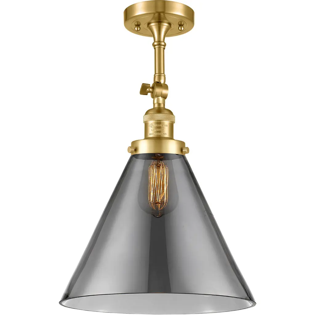 The X-Large Cone 1 Light Semi-Flush Mount is part of the Franklin Restoration Collection. Solid Brass 180 Degree Adjustable Swivel with internal teeth that lock in at 5 degree intervals With Engraved Cast Cup