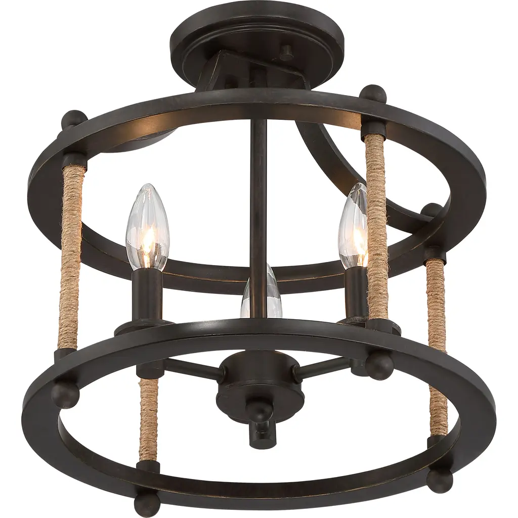 Frontier 3 Light 13 Inch Imperial Bronze Semi-Flush Mount Ceiling Light