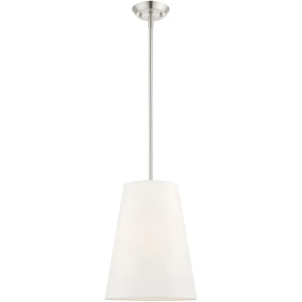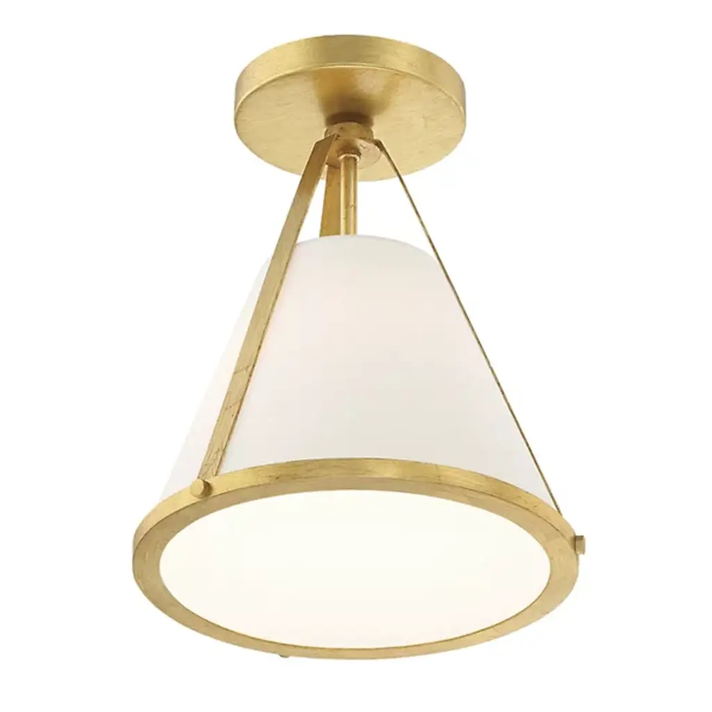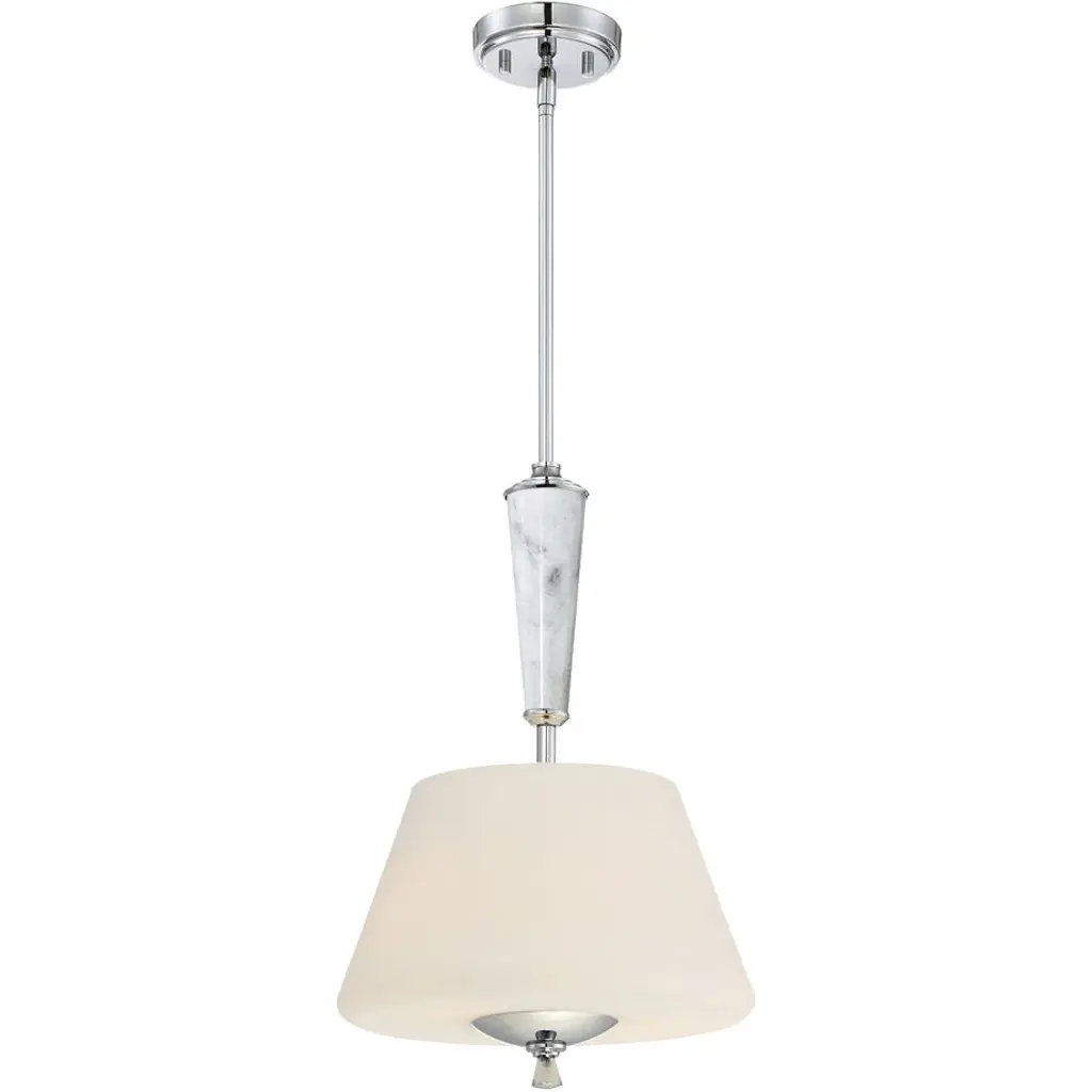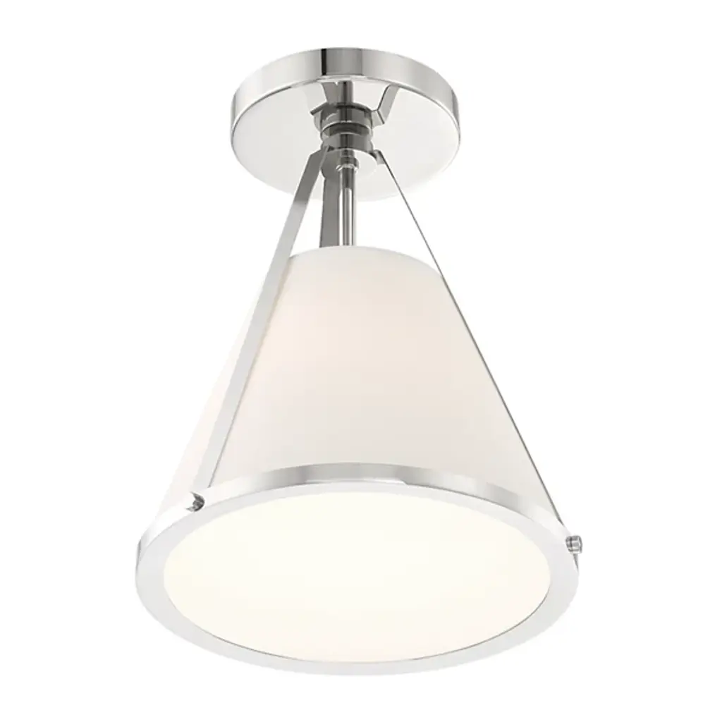 The Fulton Pendant/Semi-Flushmount from Crystorama expresses minimalism with its clean lines. It includes a conical silk shade that creates a soft, mellow glow. The shade is trimmed with a polished steel ring at the base, adding a touch of modern glamour to the otherwise modest design. The combination of the crisp shade and the gleaming metal accents allows this pendant to complement contemporary and transitional settings. It proves that sometimes, less truly is more when it comes to impactful lighting design.