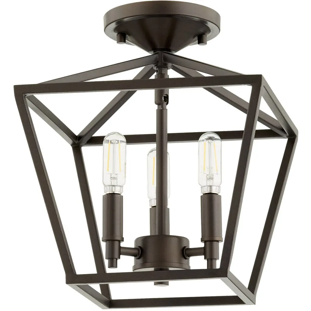Gabriel 3 Light 10.25 Inch Gold Leaf Semi Flush Mount Ceiling Light, Quorum Home