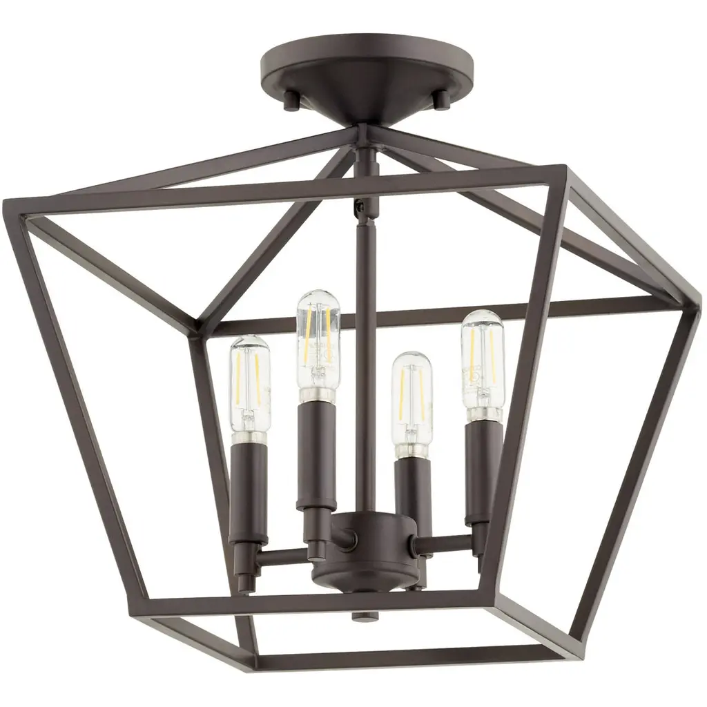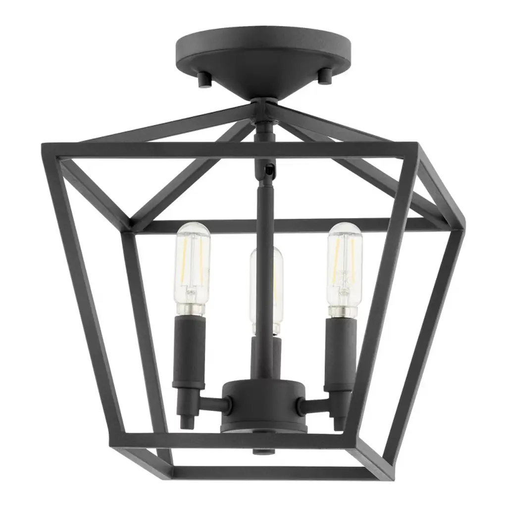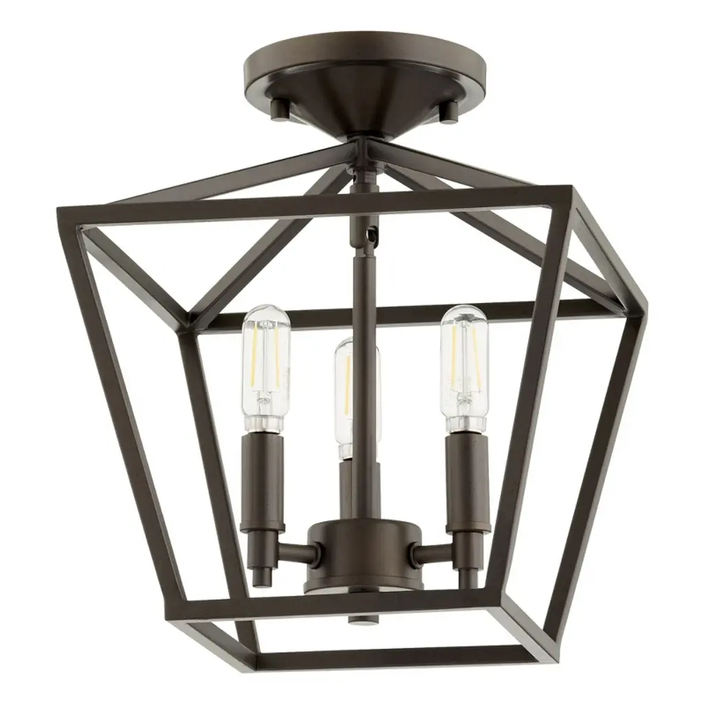 Gabriel 3 Light 10 Inch Oiled Bronze Semi Flush Mount Ceiling Light, Quorum Home