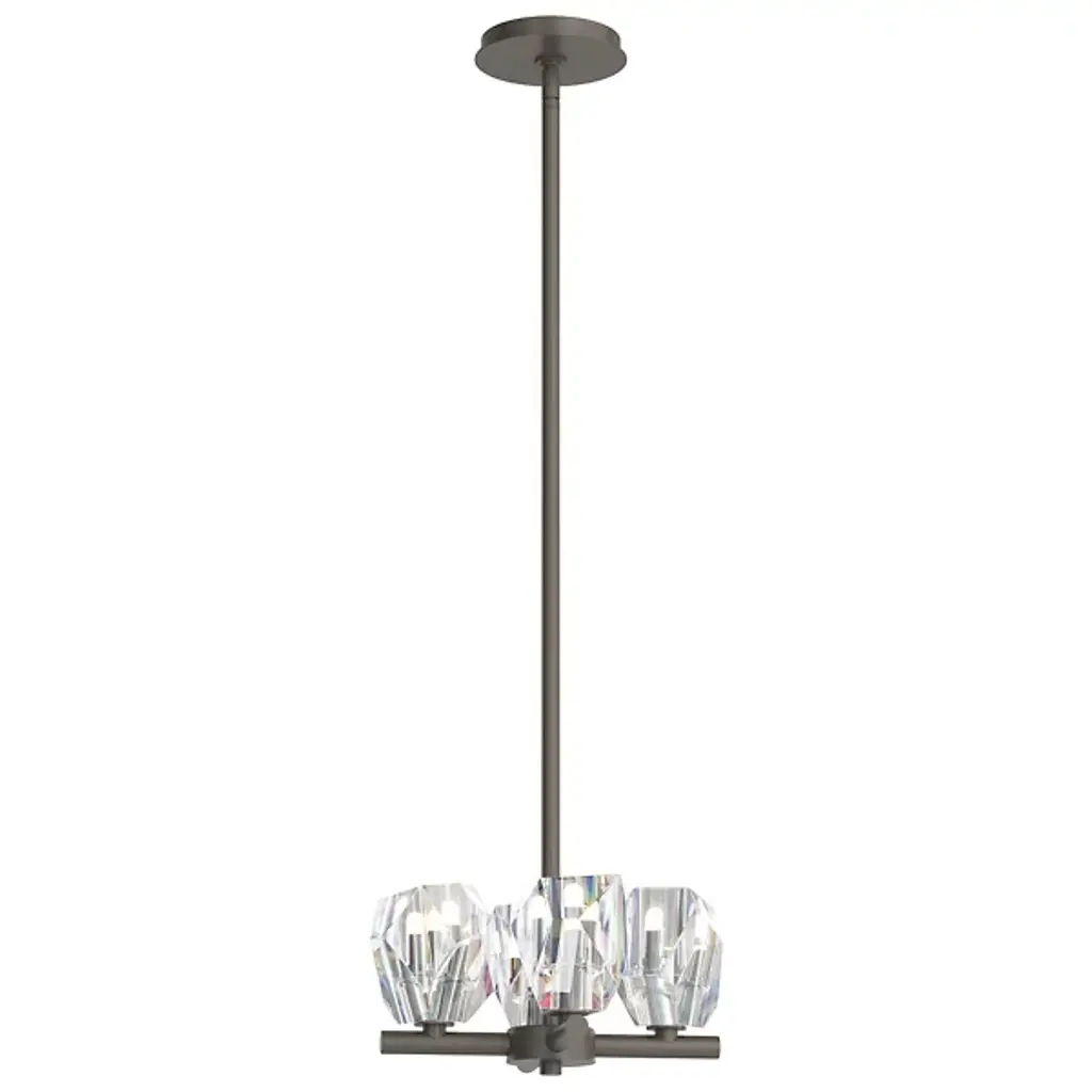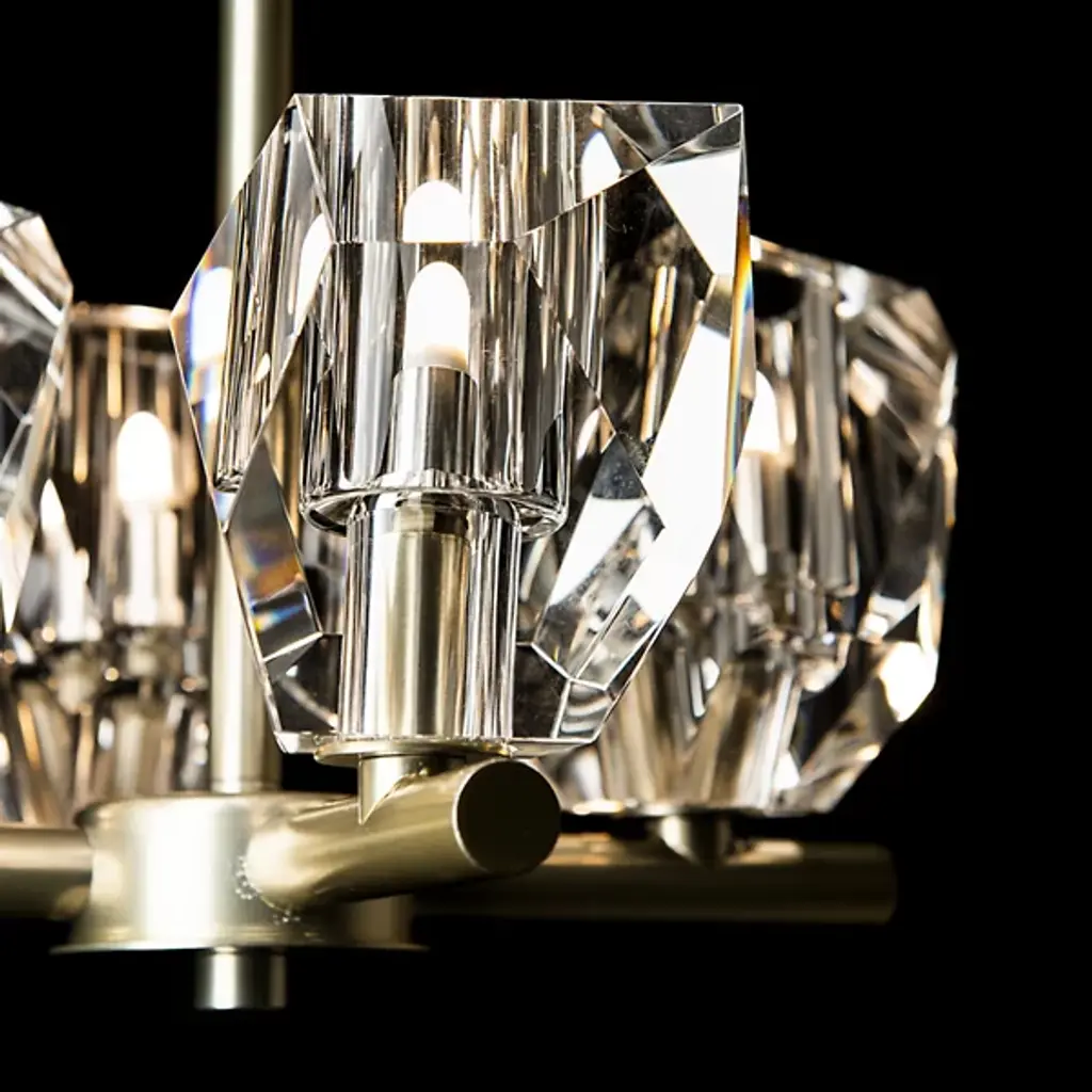 Make a strong statement with your indoor lighting choices. The Gatsby 4-Light Semi-Flushmount/Pendant design by Hubbardton Forge uses polished crystal to steal the show. A four-bar cross-bar supports one faceted bowl-shaped crystal globe on each bar. Inside the globes, a light bulb is tucked inside to catch light and beautifully disperse it upwards and outwards. Mount this four-light pendant above your dining or kitchen table. This modern indoor fixture is adjustable to be used as a pendant or semi-flushmount.