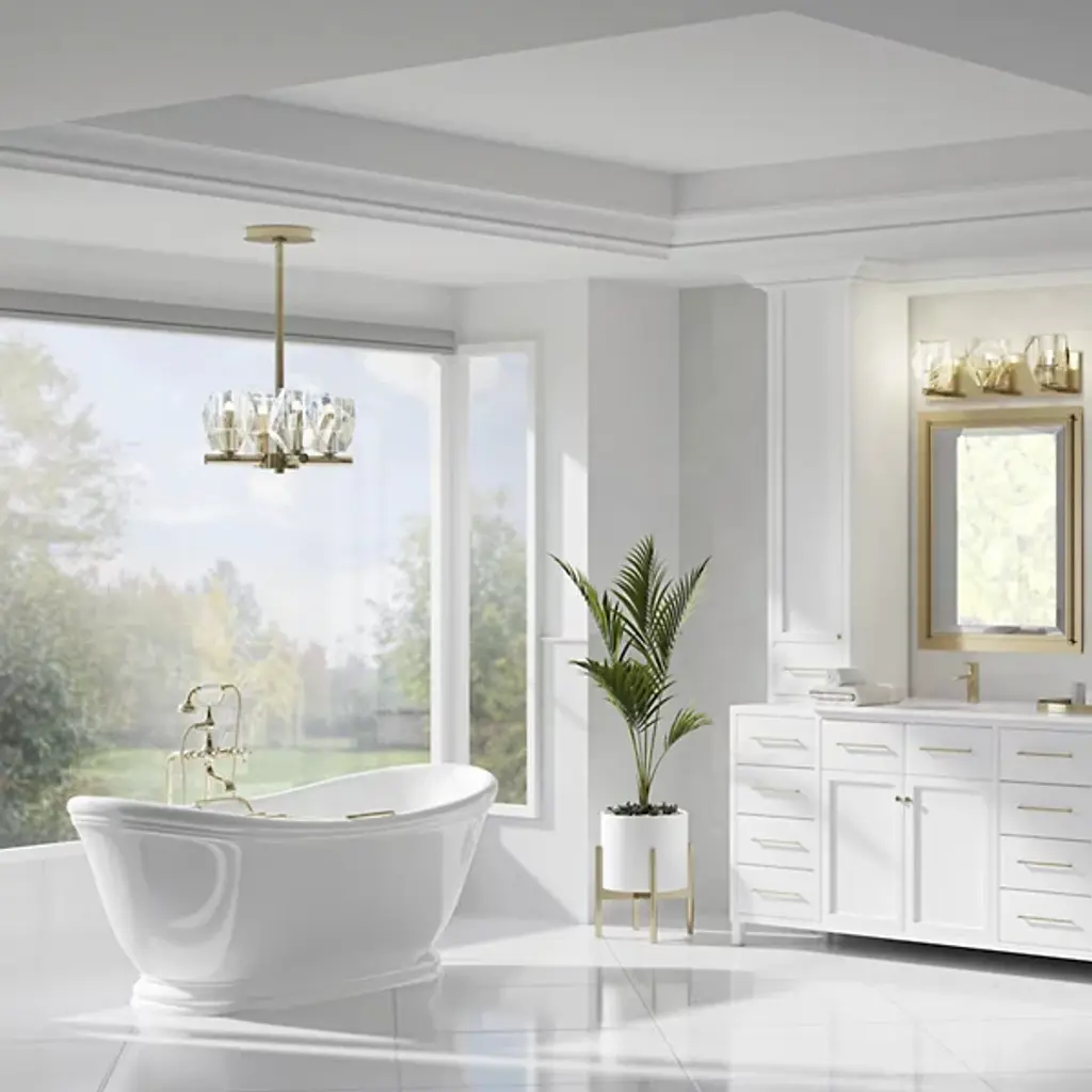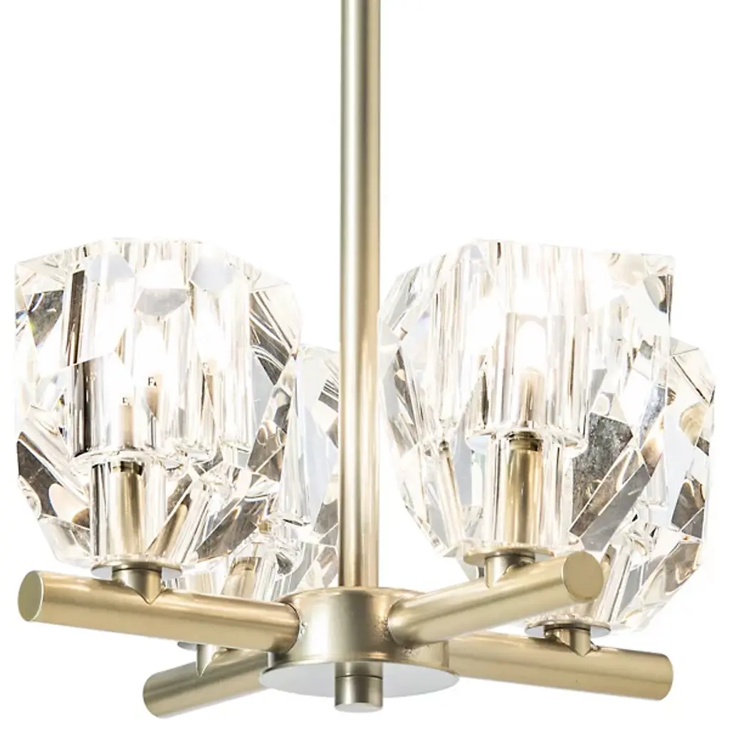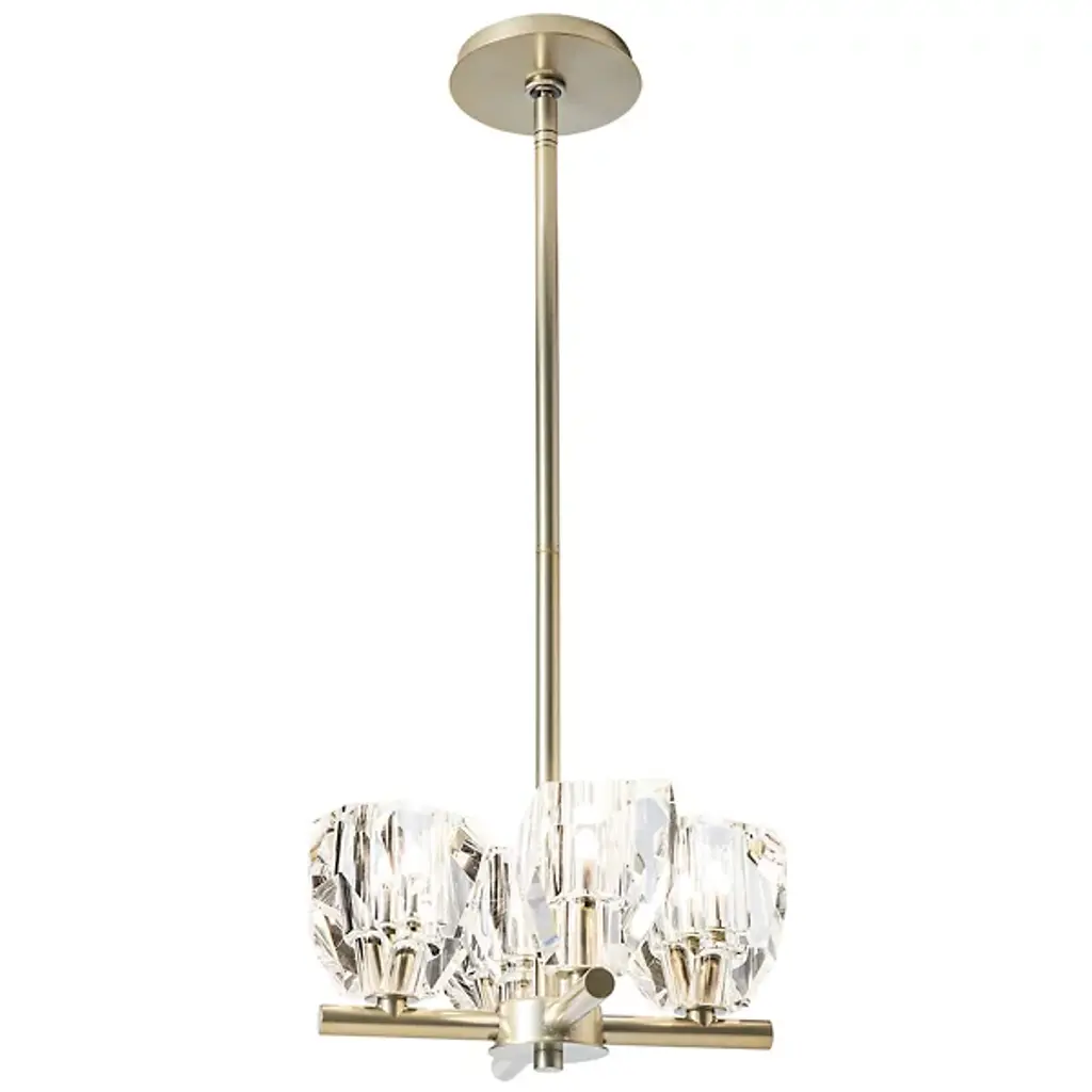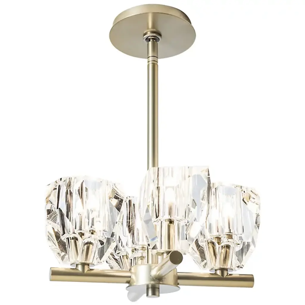 Make a strong statement with your indoor lighting choices. The Gatsby 4-Light Semi-Flushmount/Pendant design by Hubbardton Forge uses polished crystal to steal the show. A four-bar cross-bar supports one faceted bowl-shaped crystal globe on each bar. Inside the globes, a light bulb is tucked inside to catch light and beautifully disperse it upwards and outwards. Mount this four-light pendant above your dining or kitchen table. This modern indoor fixture is adjustable to be used as a pendant or semi-flushmount.