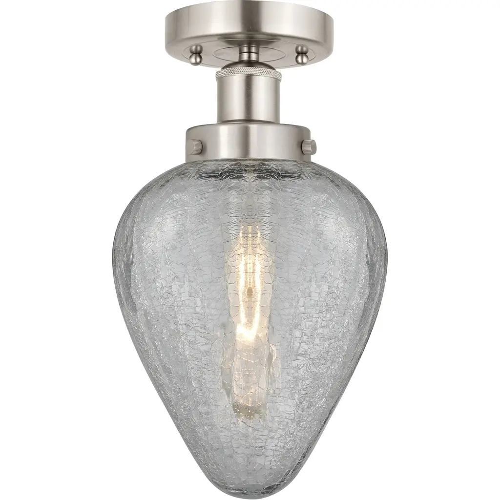 Geneseo - 1 Light 6" Semi-Flush Mount - Antique Brass Finish - Clear Crackled Glass Shade