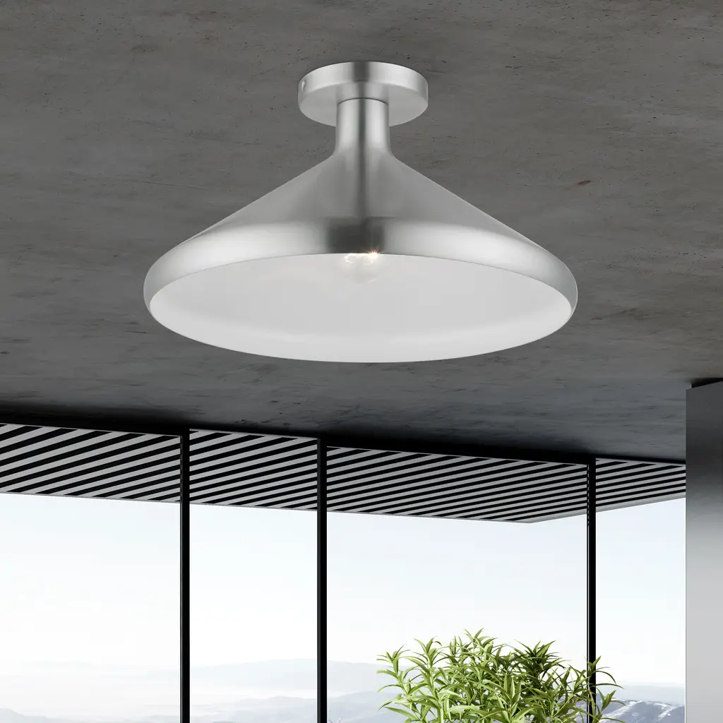 Geneva 1 Light 15 Inch Brushed Aluminum Semi-Flush Mount Ceiling Light