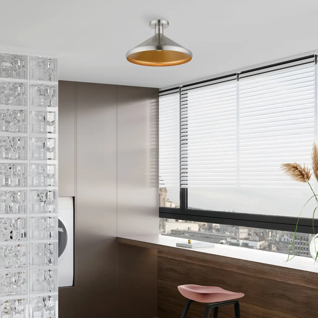 Geneva 1 Light 15 Inch Brushed Nickel Semi-Flush Mount Ceiling Light