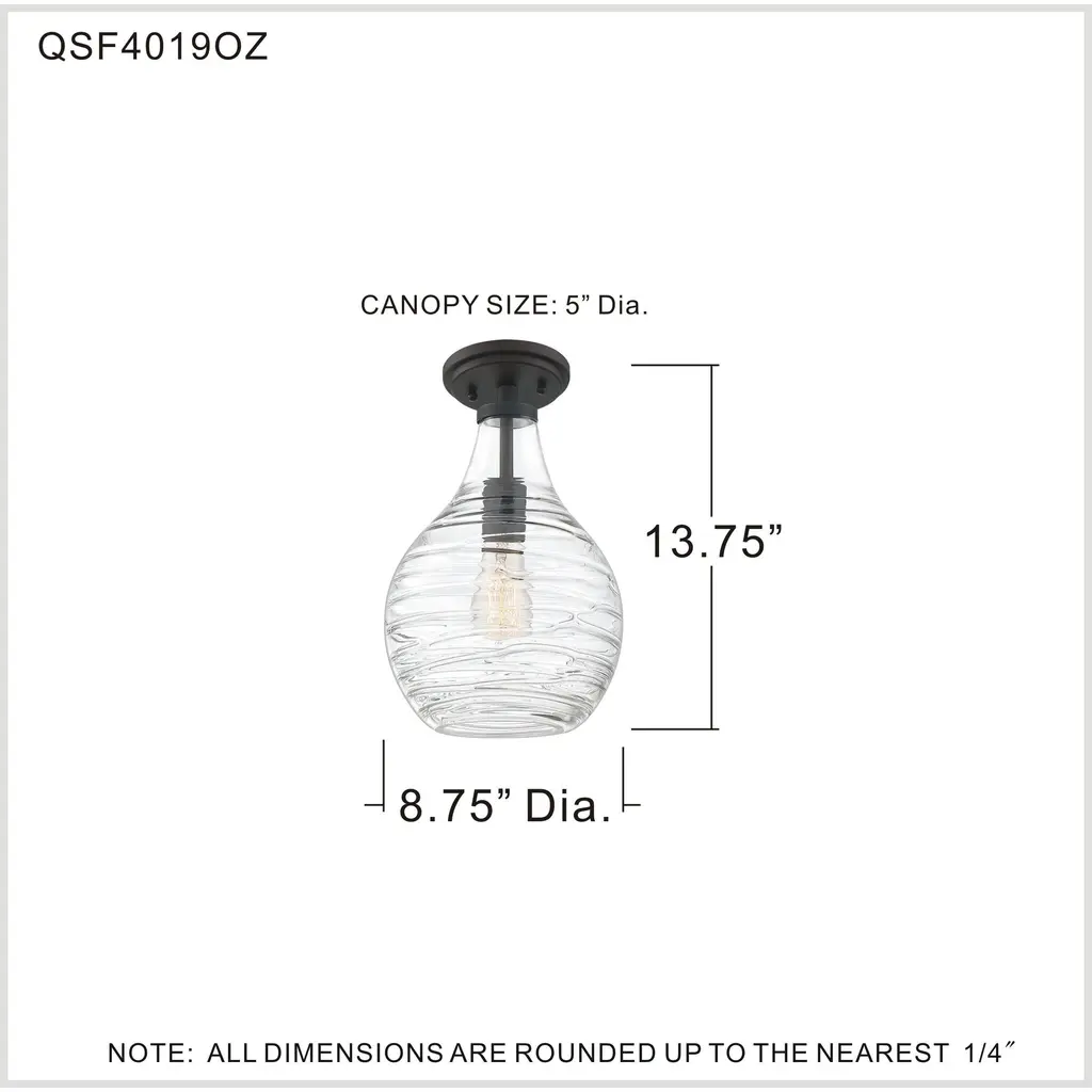 Genie 1 Light 9 Inch Old Bronze Semi-Flush Mount Ceiling Light