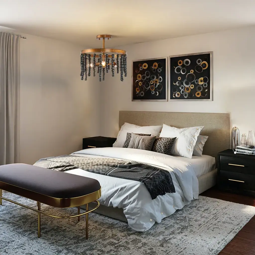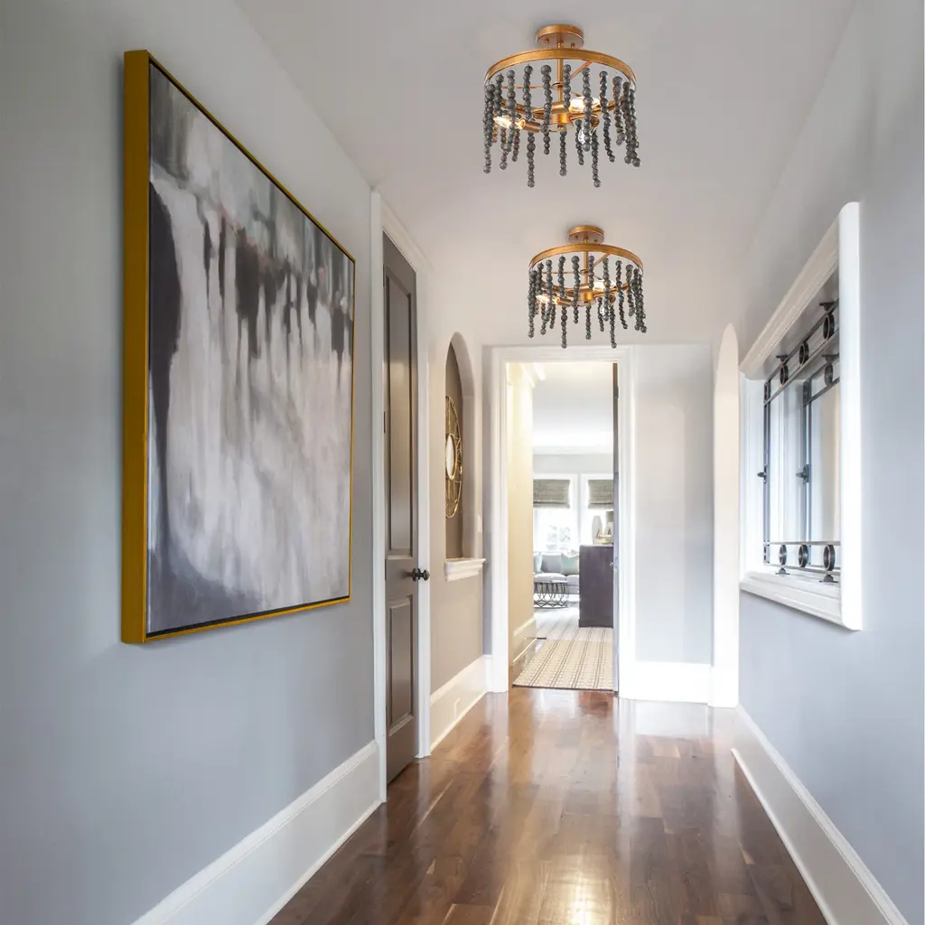 Genzi Boho Glam 3-Light Brass Beads Semi-Flush Mount Ceiling Light Entryway Dining Room - D14"*h14" - D14"*h14"