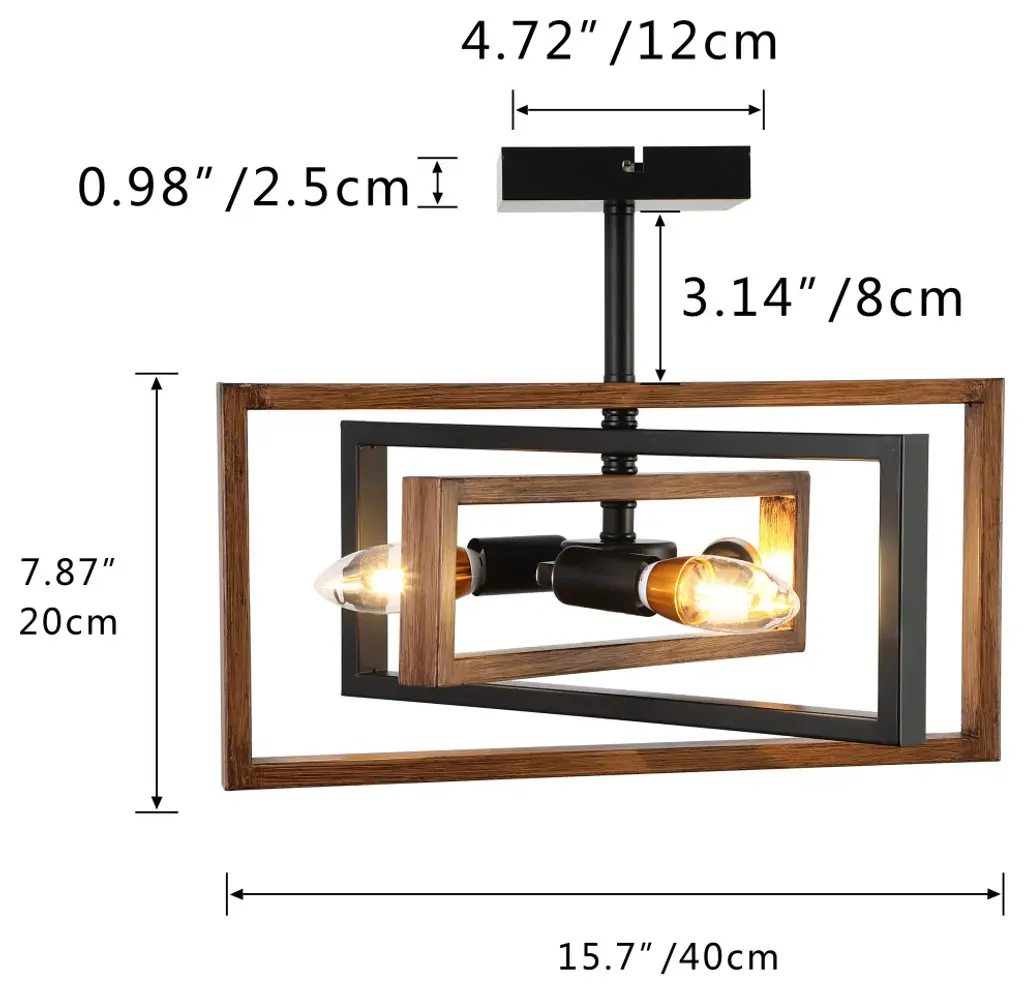 Specifications:Style: Modern Semi Flush Mount Ceiling LightMaterial: MetalColor: BrownVoltage: 110VPer Bulb Wattage: 60WBase: E12Number of Lights: 3 Lights (bulbs are not included)Features:Modern Design - This 3-Light ceiling light is combined with a rectangular frame interleaved design and black body finish, which is simple and elegant without lack of design.Easy Assembly - Our ceiling light fixture includes all mounting hardware a step by step instructions in the package for easy and quick installation.Bulb Requirement - The ceiling light can go with 3 bulbs that max 60w E12, fully dimmable with a compatible dimmer switch to create the perfect atmosphere(bulbs which are not included).Application - The modern rectangular ceiling light is ideal for suspending over kitchen islands, dining rooms, living rooms, Loft, Cafe, Bar, Club, Restaurants, Libraries, and so on.Notes: Do not connect electricity until your fixture is fully assembled.For a longer service life, Please use it in a dry environment.Please feel free to contact us any time if you have any questions, we will try our best to help you solve all your problems.