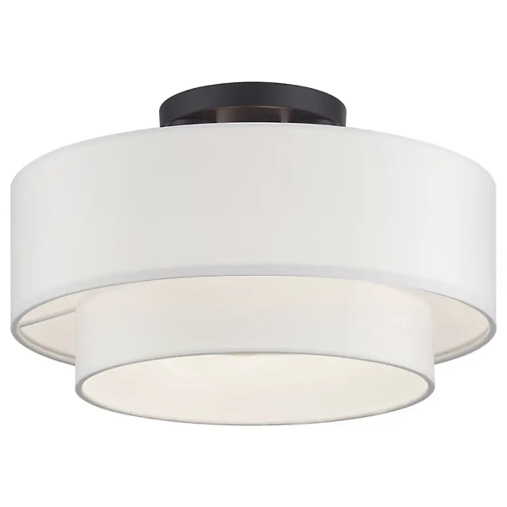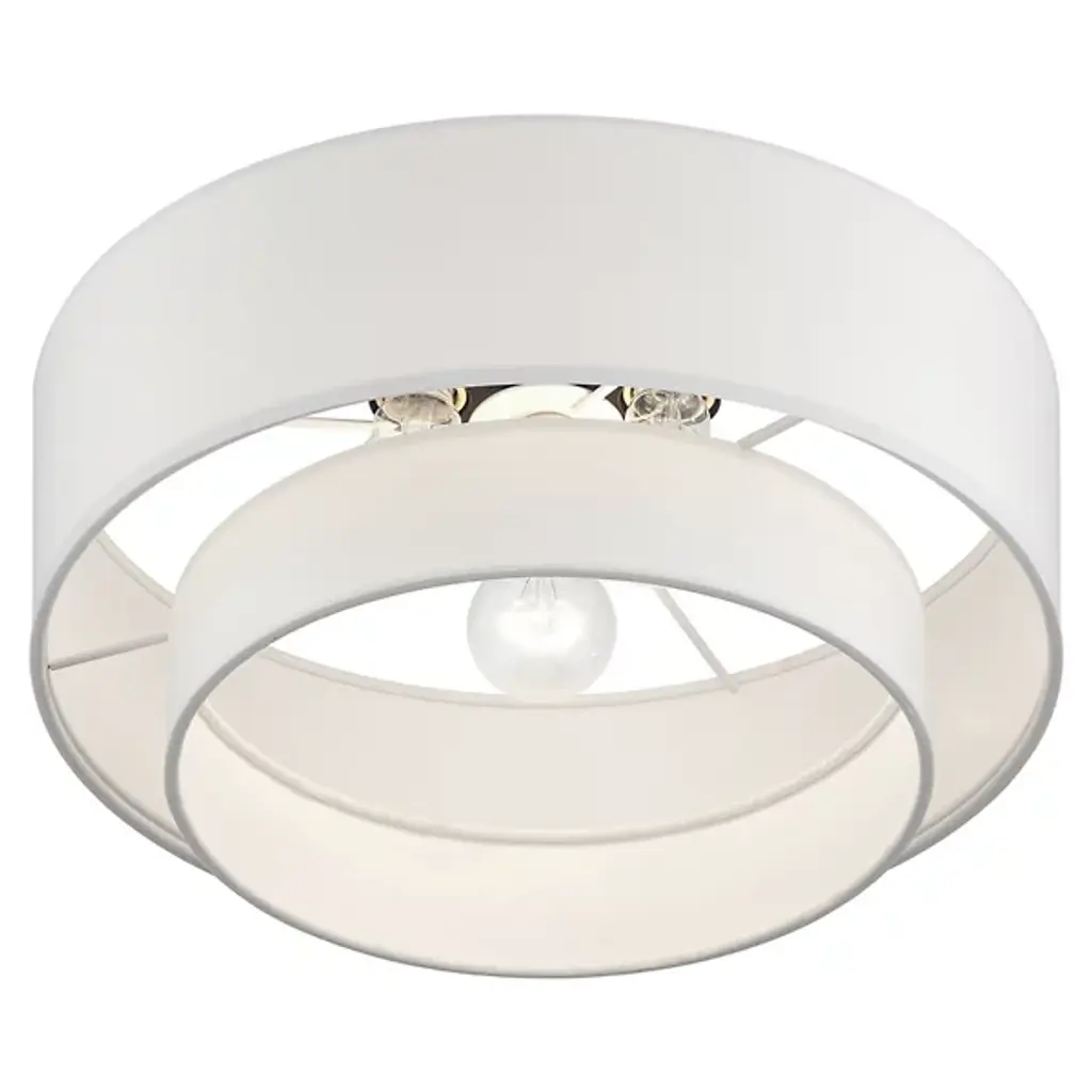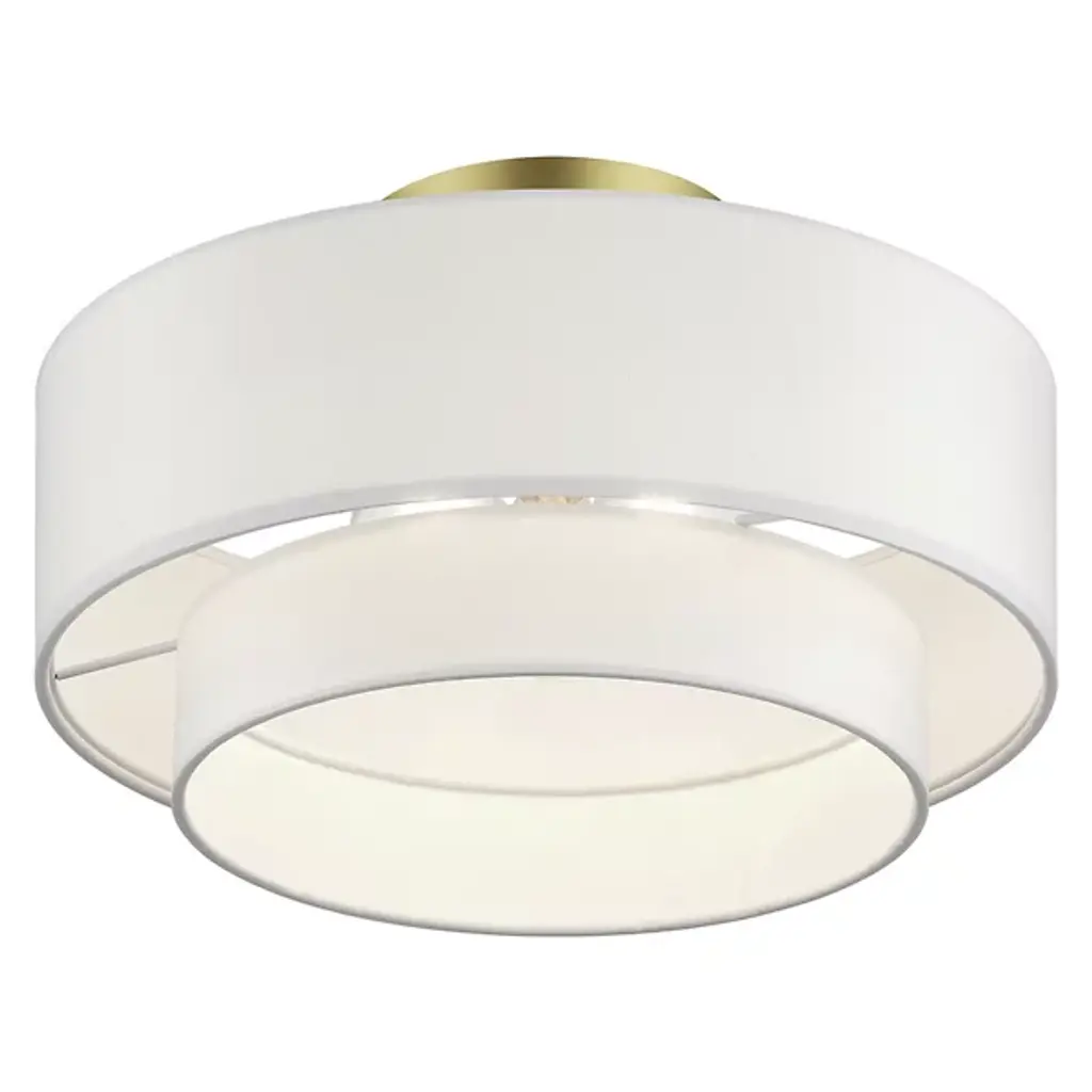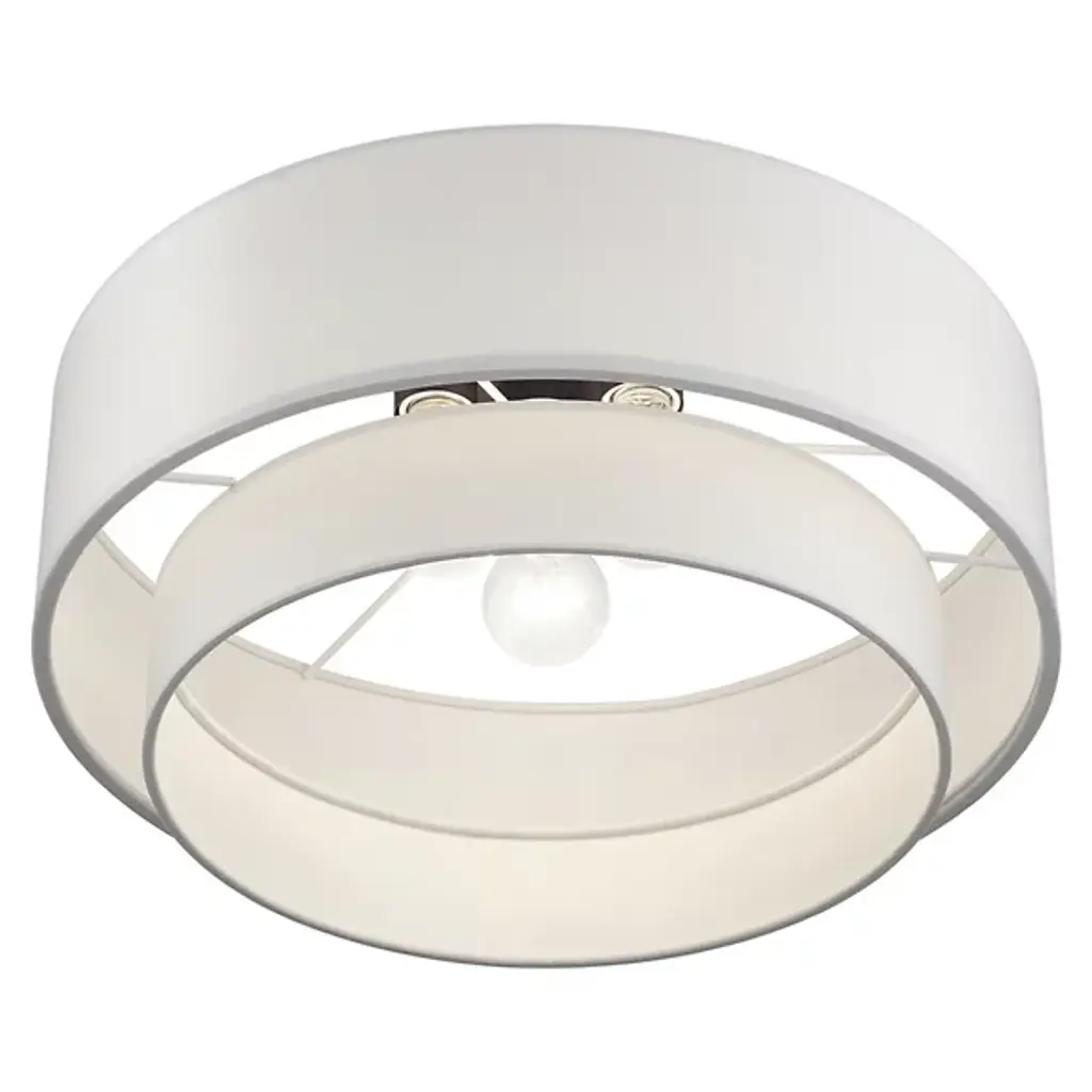 Elegant and luxurious, the Geraldine Semi-Flushmount from Alder & Ore exemplifies transitional style with its clean, crisp look. The handcrafted off-white fabric hardback double drum shades surround strong lamping and provide a diffused warm light, beautifully complementing the sleek metal suspension structure. The layered design adds modern appeal, making it great for living spaces. It elevates any space with its sophisticated design and mixes downlight with even ambiance for an unforgettable retro character.