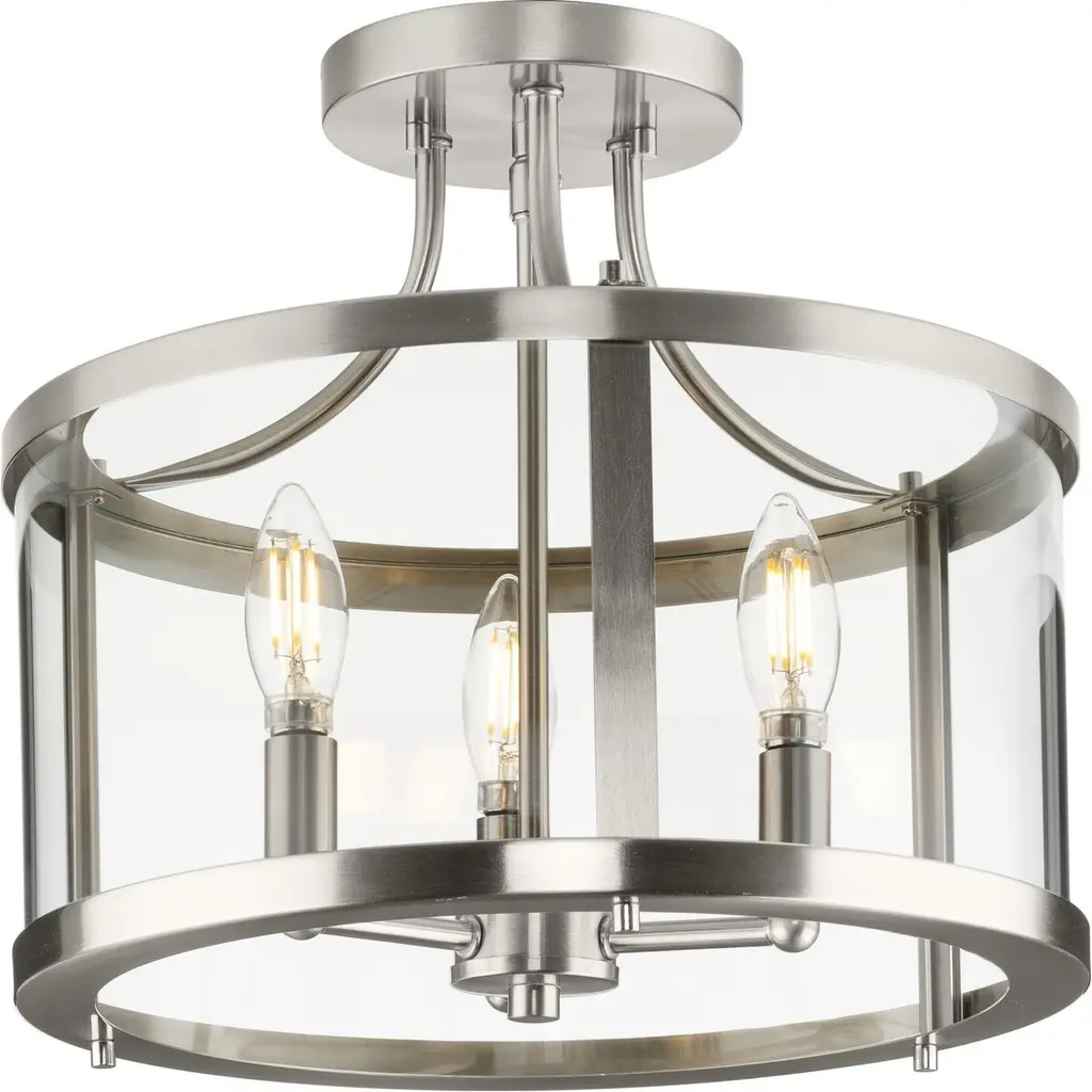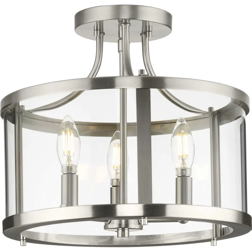 Gilliam Collection 13 In. Three-Light Brushed Nickel New Traditional Semi-Flush Mount - 13 In X 13 In X 12.12 In - 13 In X 13 In X 12.12 In