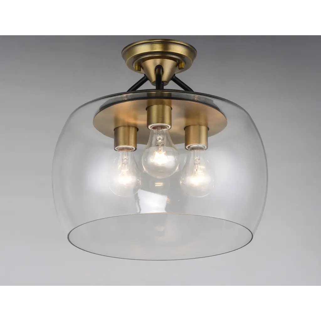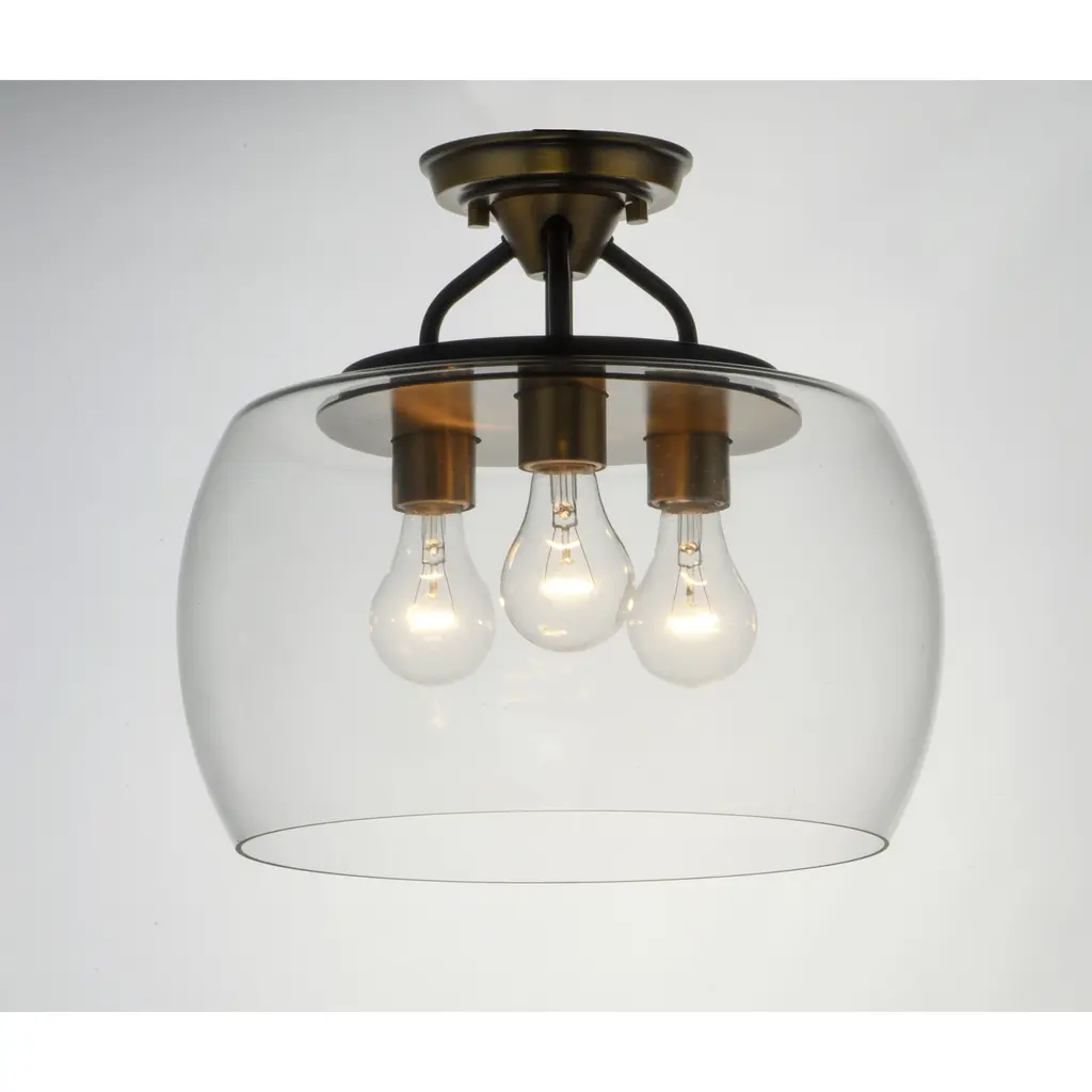 Goblet 3 Light 14 Inch Bronze/antique Brass Semi-Flush Mount Ceiling Light In Bronze And Antique Brass