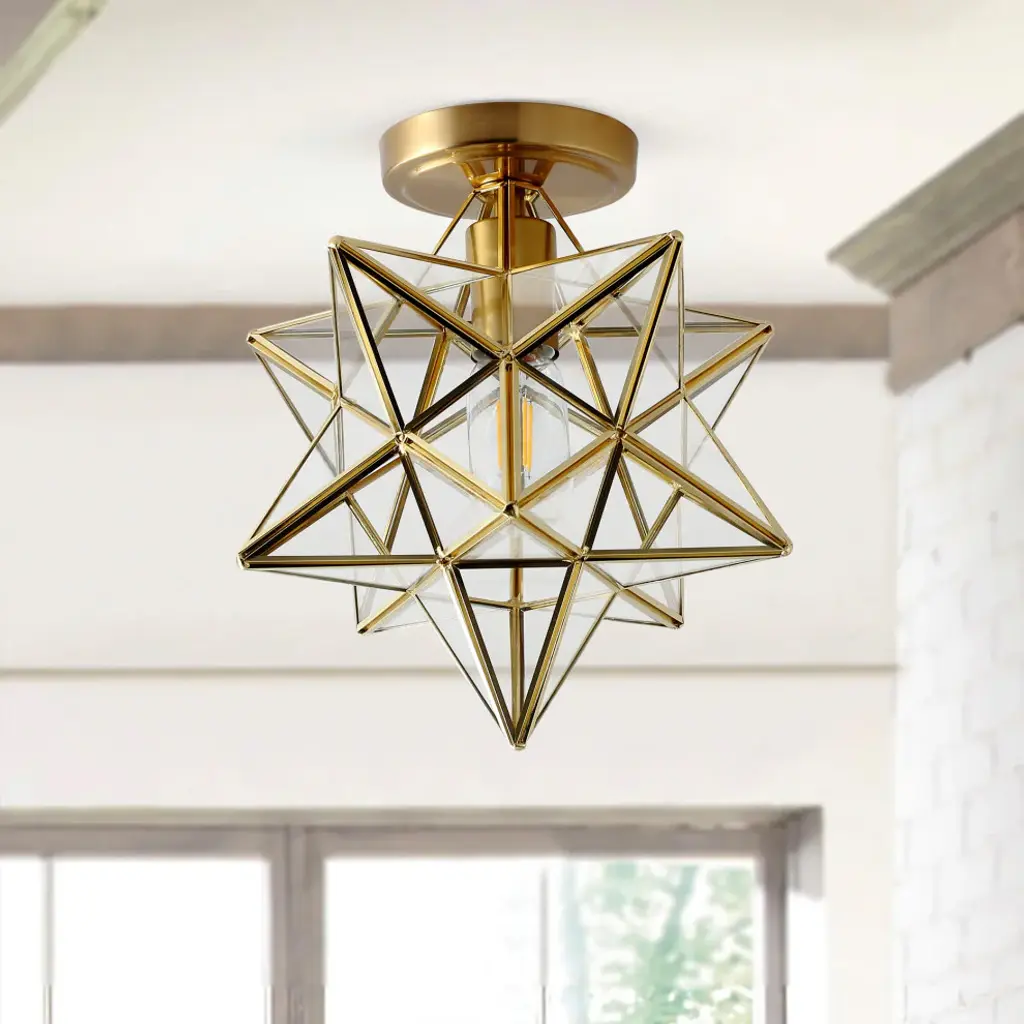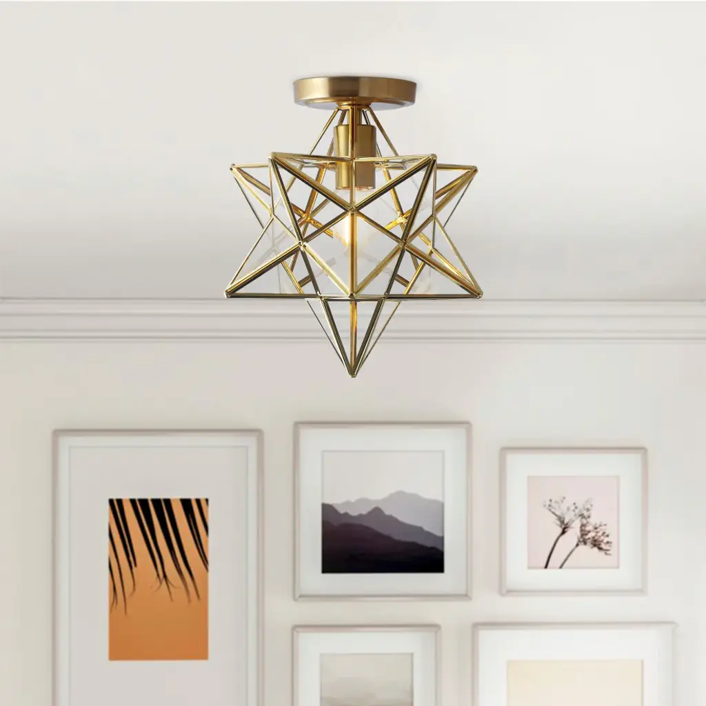 Gold 1-Light Moravian Star Ceiling Light Modern Geometric Semi Flush Mount Light