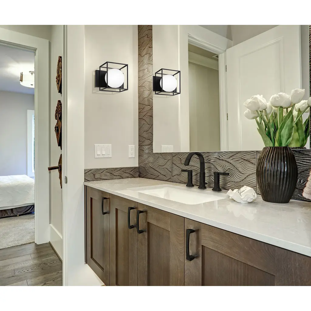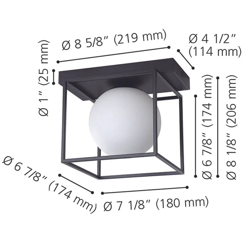 The Grayson 1 light ceiling light by Eglo is fashioned with an open design, it is framed in a matte black finish surrounding white sphere shaped glass shade. The Grayson ceiling light is a greatway to accentuate a variety of spaces in your home. This can be used in ceiling or wall applications.