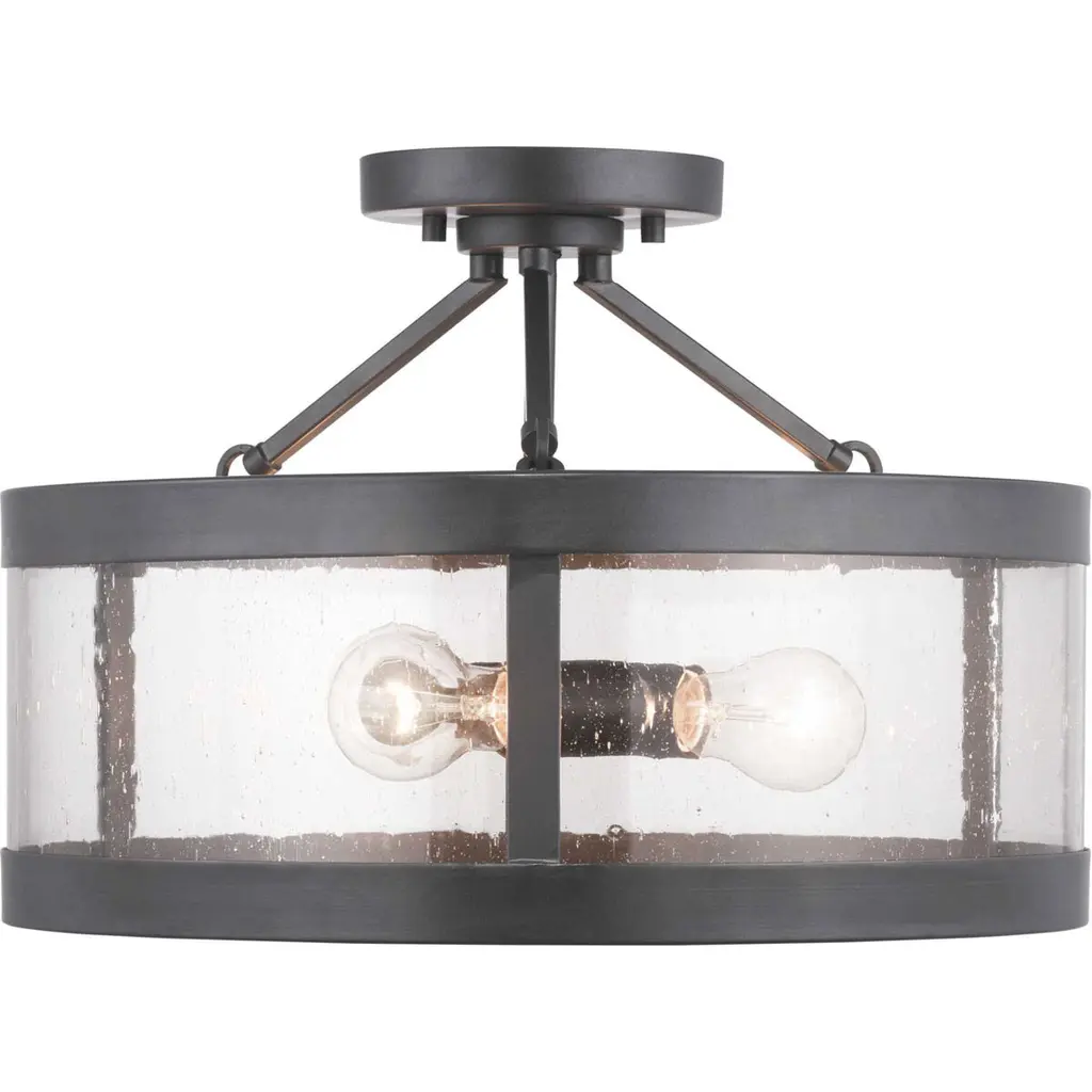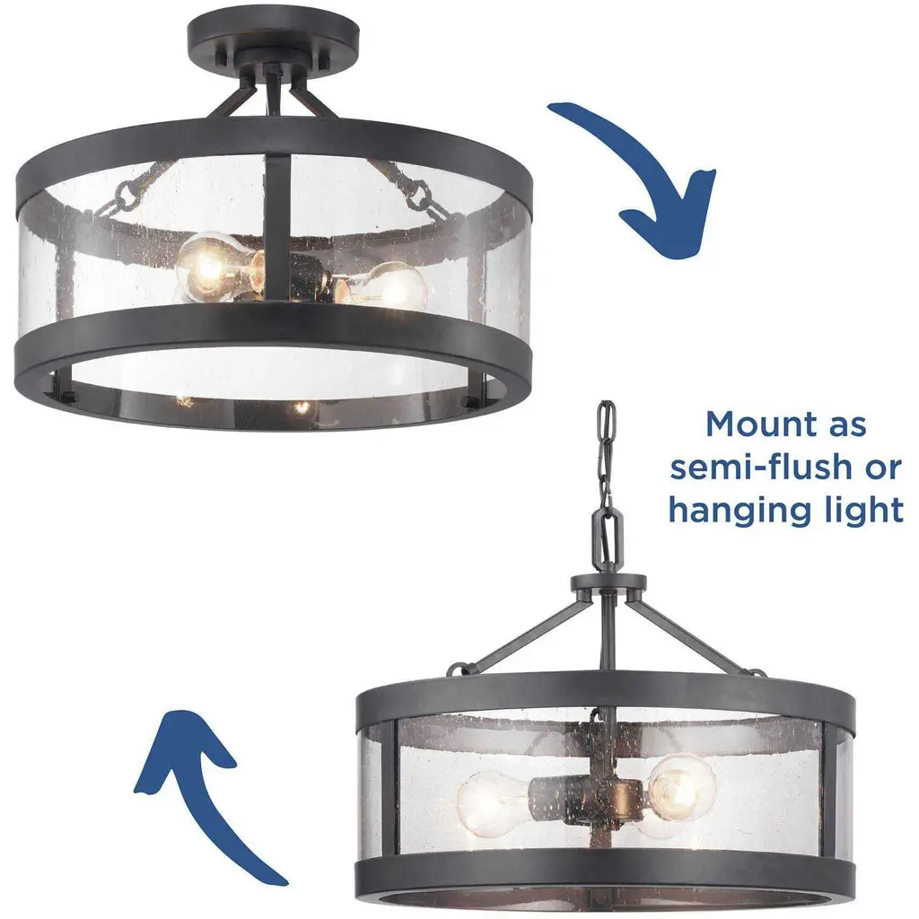 A display of substantial style in a three-light semi flush convertible, Gresham Collection’s frame was inspired by the elegance of traditional iron structures. Specific attention to forging details creates a distinctive collection for Transitional and Farmhouse interior spaces. Seeded glass shades and a Graphite finish pair together to complete the look.