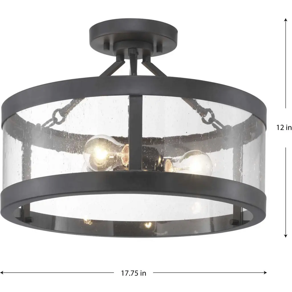 Gresham 3 Light 18 Inch Graphite Semi-Flush Mount Convertible Ceiling Light, Design Series
