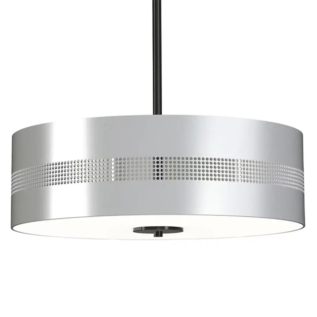 Bring an elegant addition to your inside living spaces with the Grid 3 Semi-Flushmount / Pendant from George Kovacs. A clever contemporary fixture retained by a sleek canopy, it dispatches a single stem down to four strong lamps set within a rounded shade. The shade’s partially pierced, brushed metal finish contrasts well with the matte coal-textured surface of the structure, while a circular diffuser sits in its lower opening, mellowing bright glare into a pleasing, even glow.