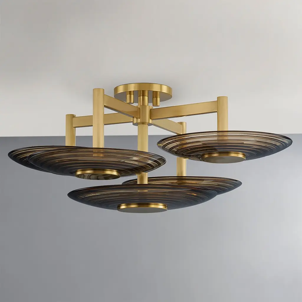 Griston Semi Flush, Smoke/aged Brass