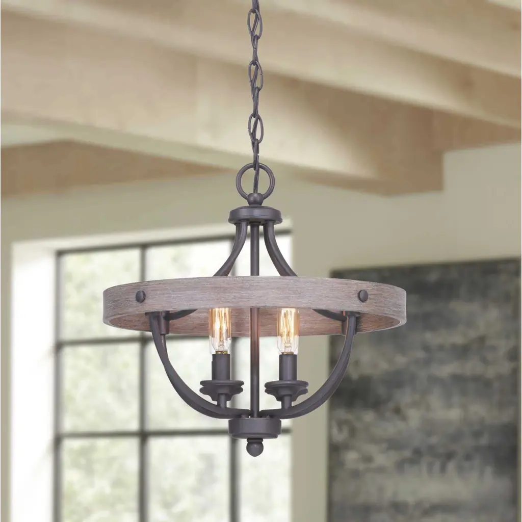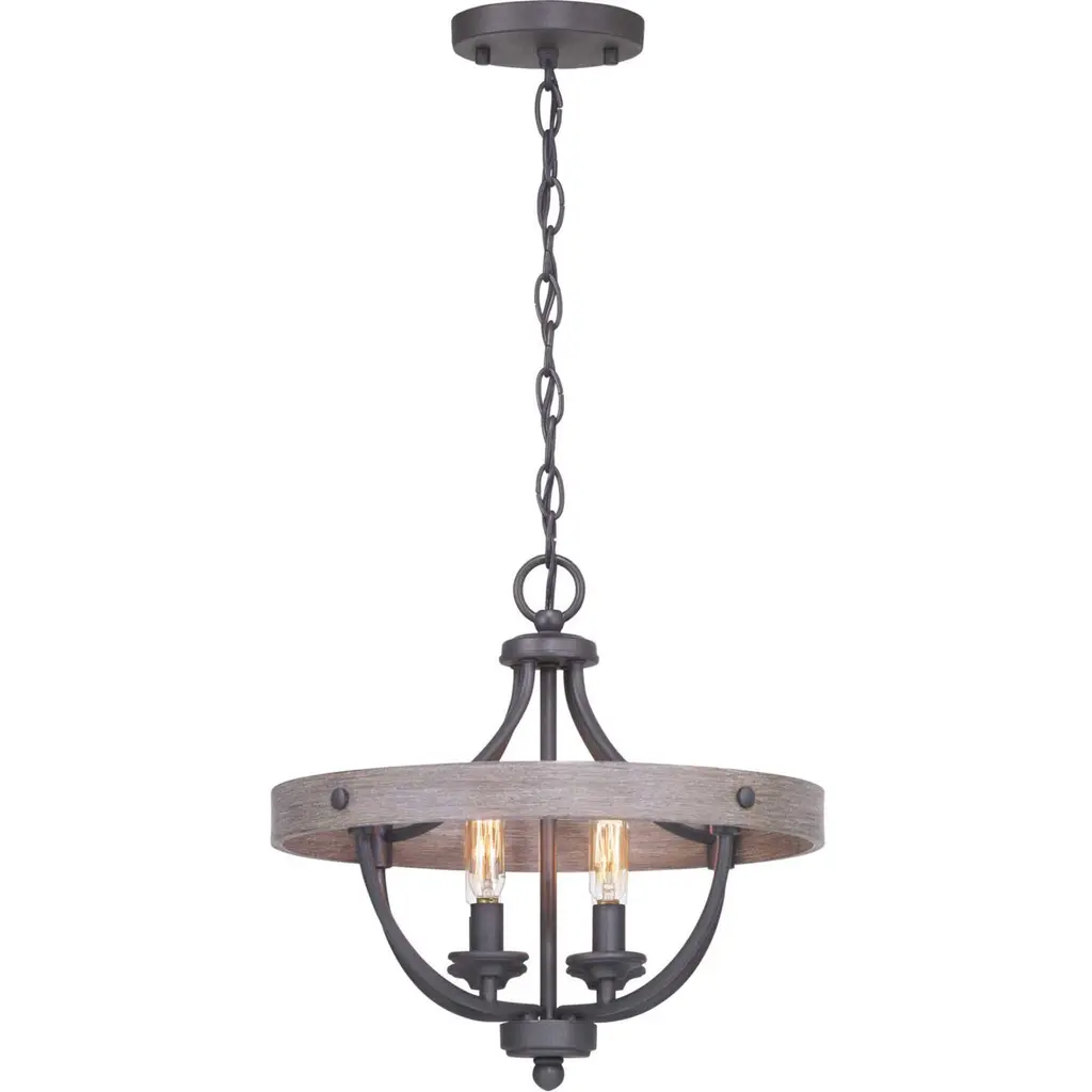 The four-light semi-flush fixture that can also convert to a hanging fixture in the Gulliver Collection features arching and delicate details that curve to create an airy design. Dual toned frame color combinations in a Graphite finish with weathered oak accents The hand painted wood grained texture complements Rustic and Modern Farmhouse home decor, as well as Urban Industrial and Coastal interior settings.
