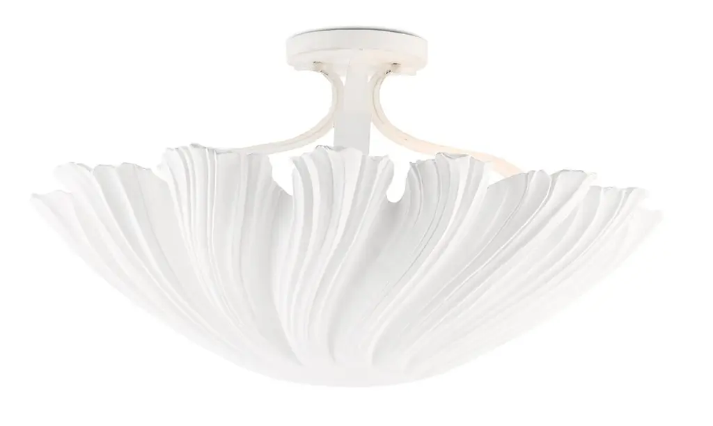Designed to resemble a tassel, this semi-flush ceiling fixture boasts a pristine white finish that will brighten a room even when the light is off. Hardwired.
