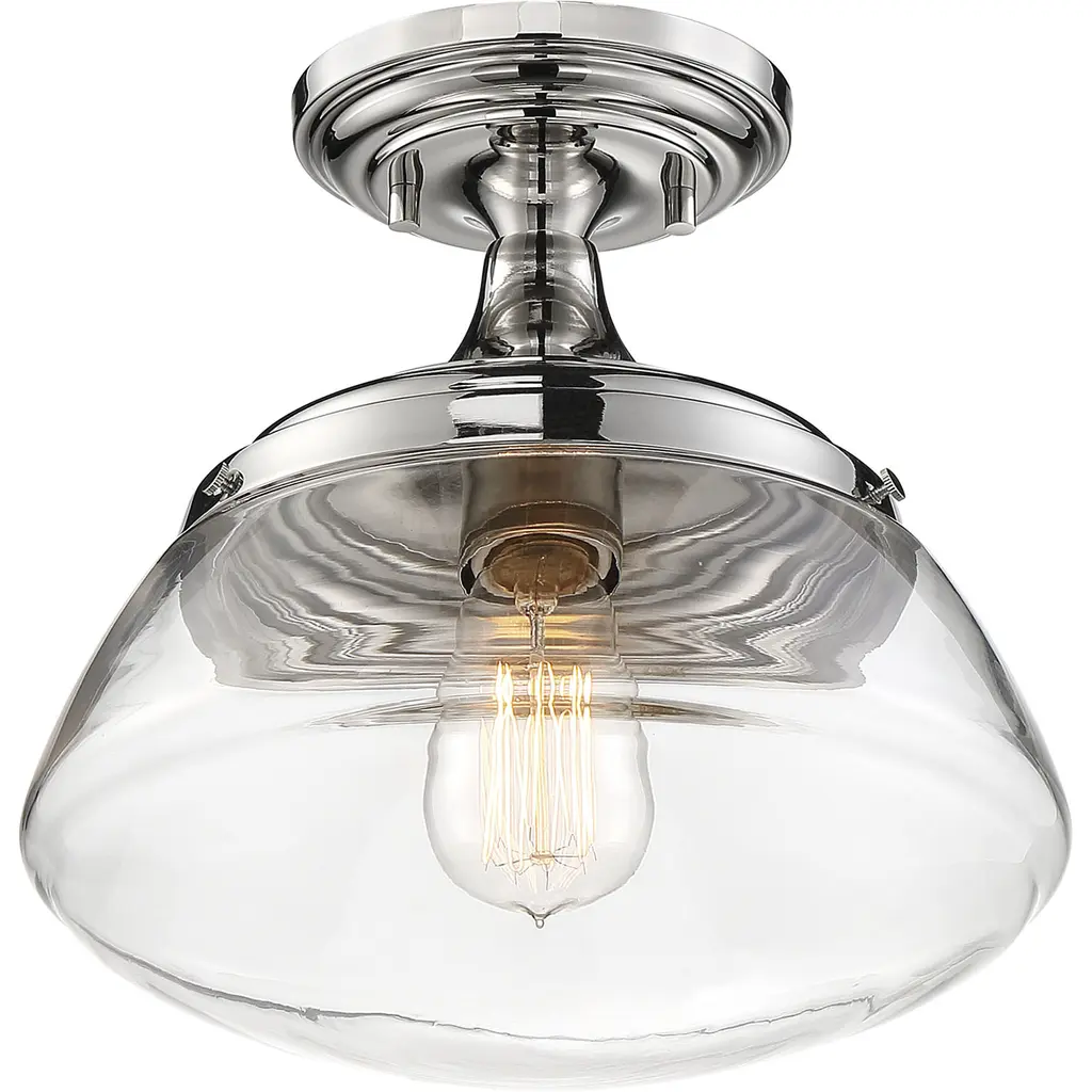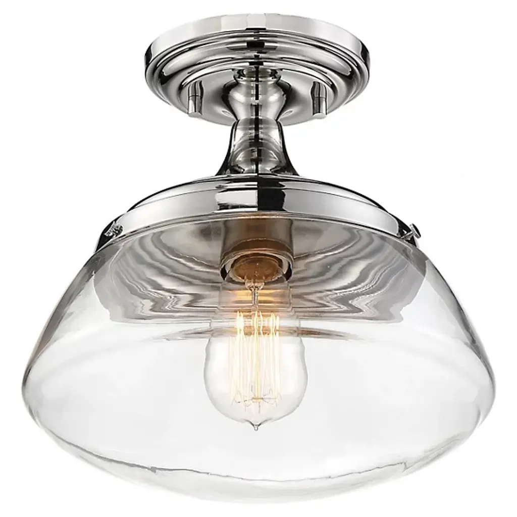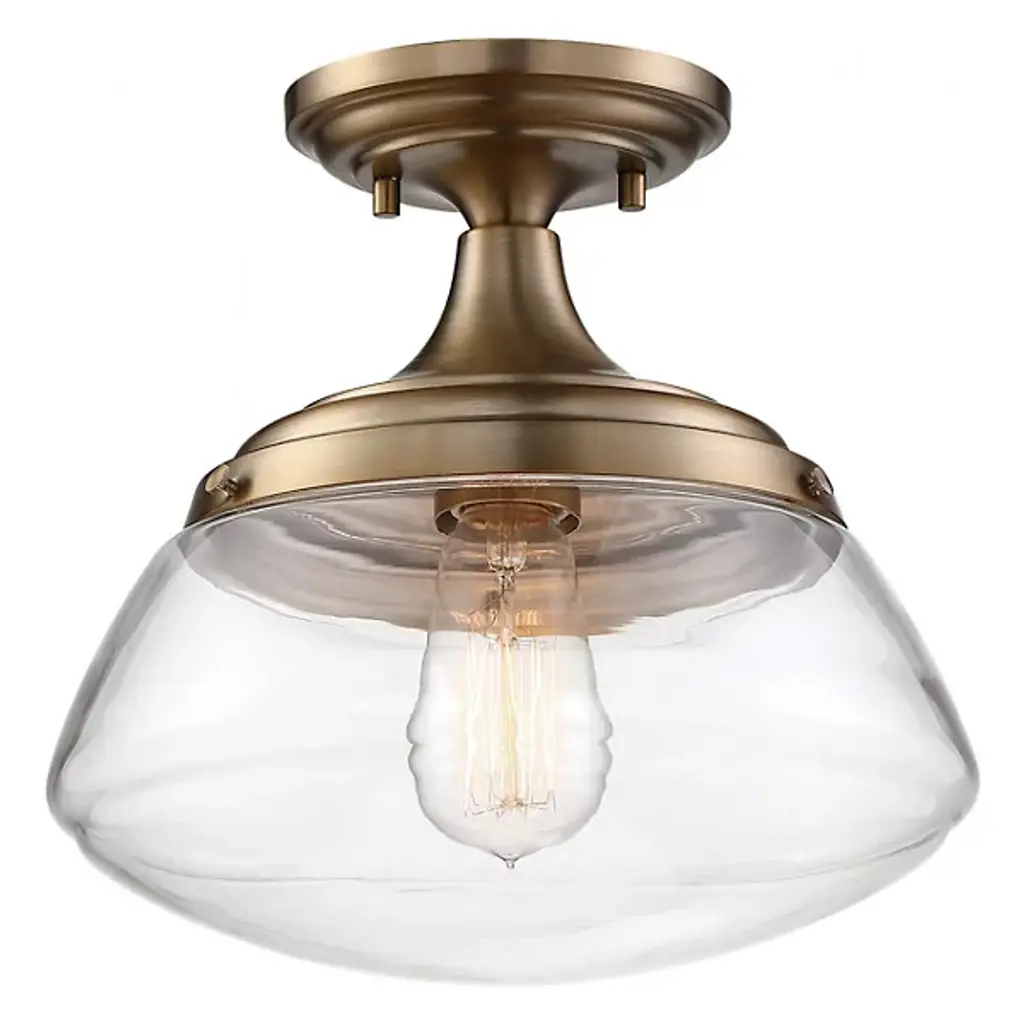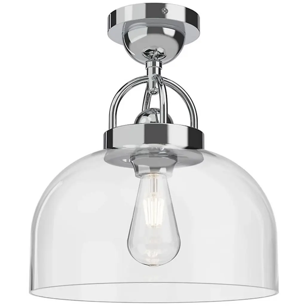 Presented by Alder & Ore, the Harlow Semi-Flushmount is a transitionally styled luxury light furnishing with farmhouse-inspired touches throughout. The exposed bulb at the center of the beautifully sculpted clear shade evokes a vintage industrial aesthetic, while metallic finials contrast elegantly against the airiness of the glass. Meant for installation on the ceiling above, display the Harlow Semi-Flushmount in spaces of preference to evoke a pleasant illumination experience for all.