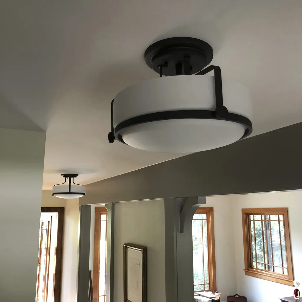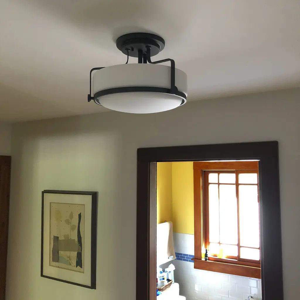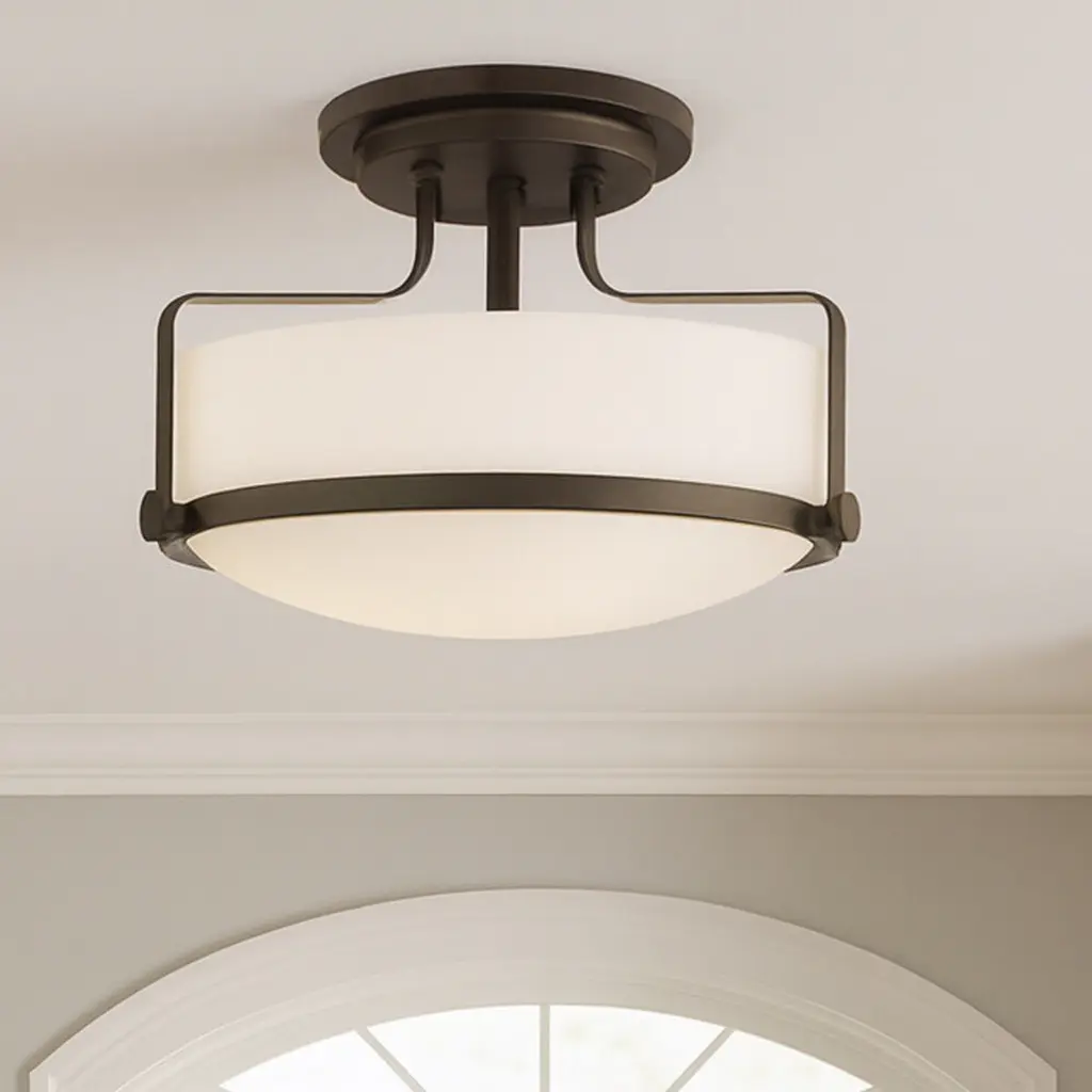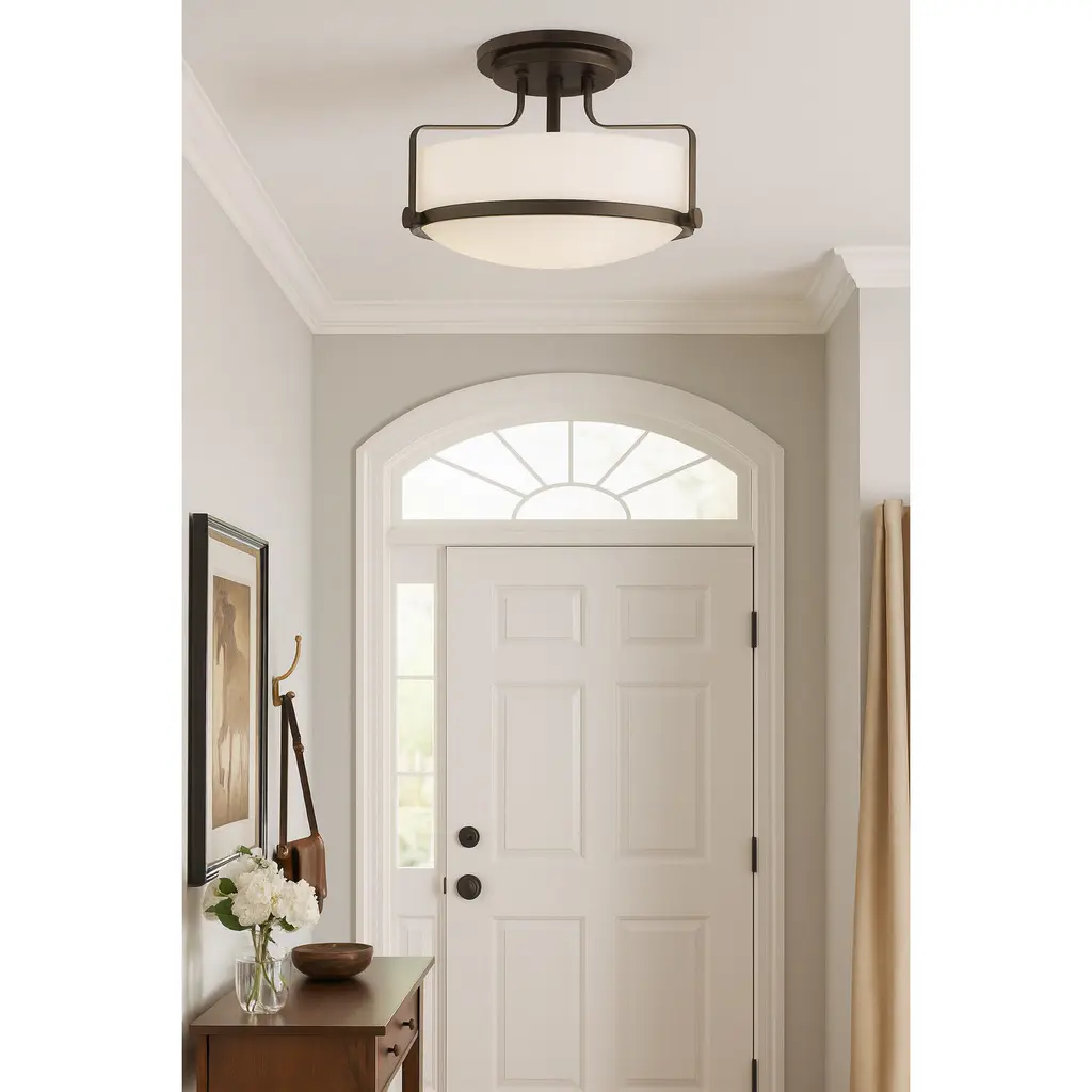 Harper 3 Light 14.5 Inch Oil Rubbed Bronze Indoor Semi-Flush Mount Ceiling Light In White