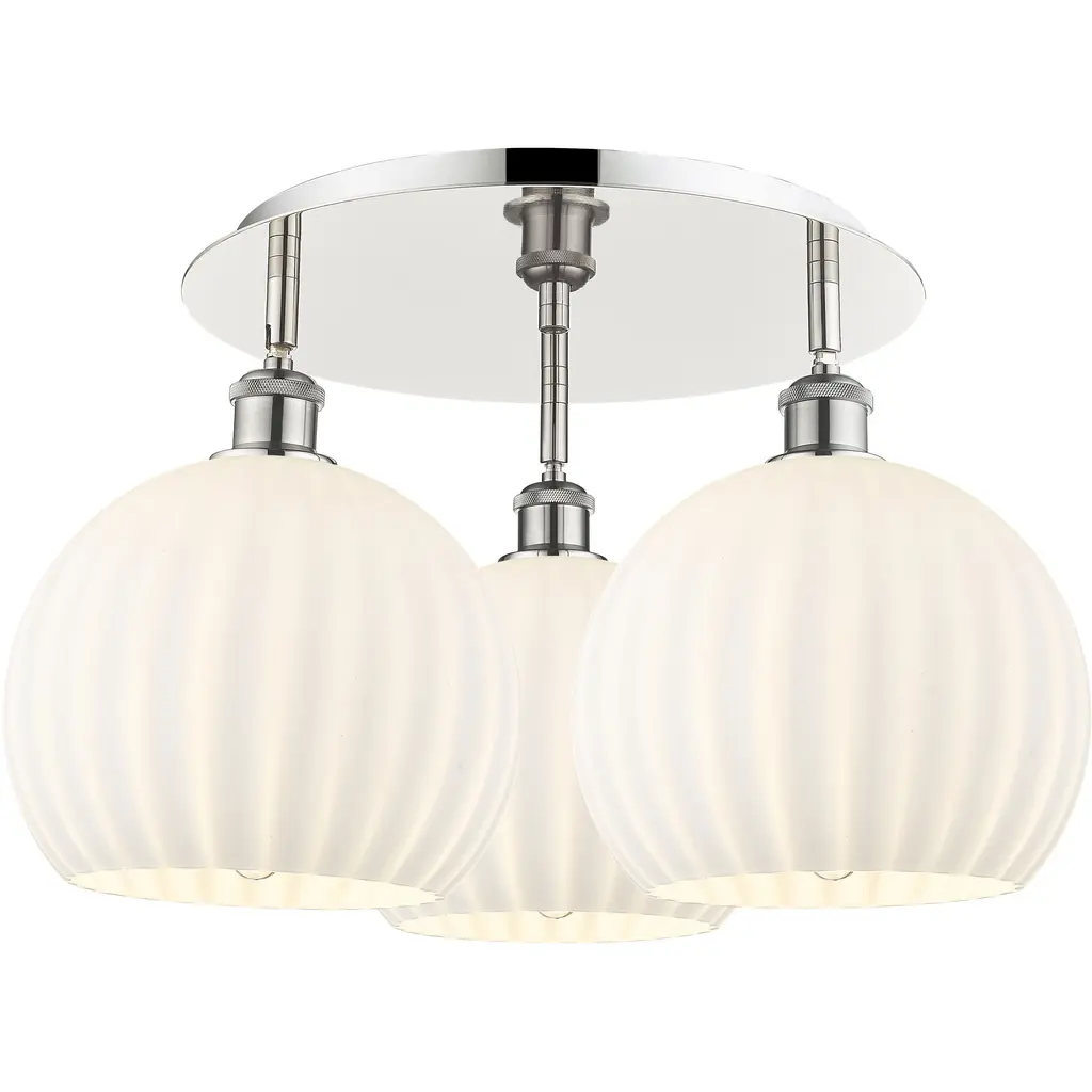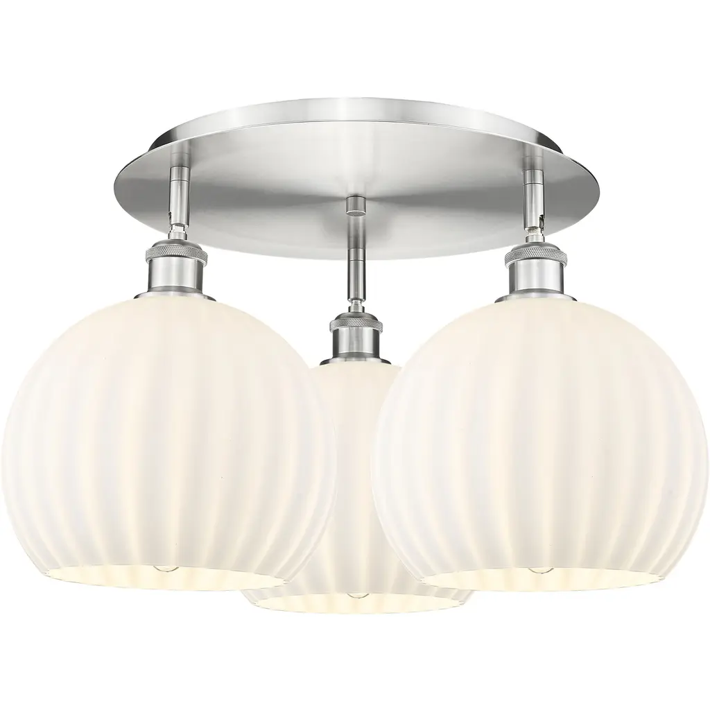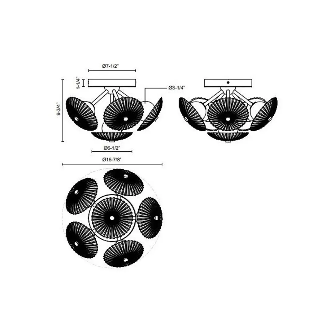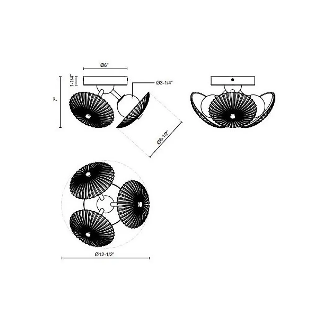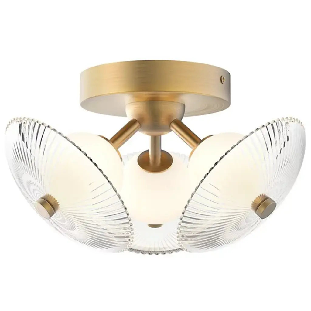 Present an ethereal, Olympian appeal to ceilings with the elegantly engaging lines of the Hera LED Semi-Flushmount from Alora Mood. An expressive Mid-Century Modern piece named for the Greek Goddes and unforgettable spouse of Zeus, its intricate appeal is prominently placed, extending short, angular arms at even intervals from a steel disc canopy, and placing strong, energy-efficient LED lamps beneath artfully-layered shades. A matte opal glass orb sweeps around each lamp, accompanied by a dish of clear ribbed glass that twinkles with glittering, refracted light.