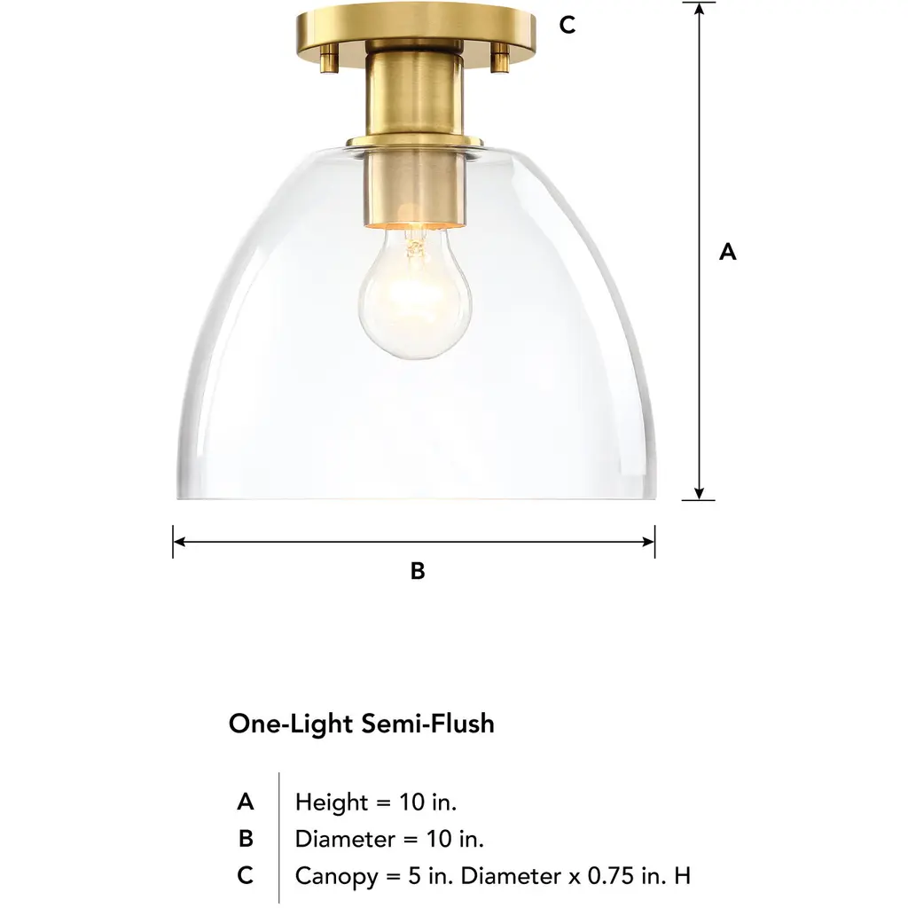 Indigo 1 Light 10 Inch Brushed Gold Semi Flush Mount Ceiling Light