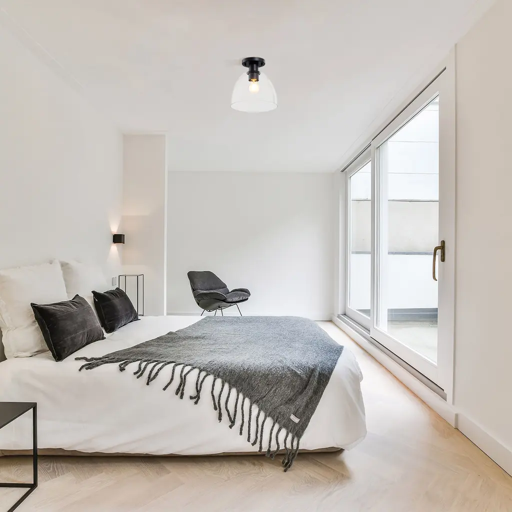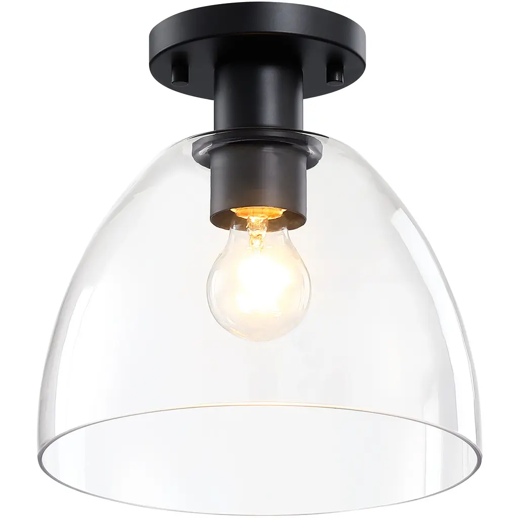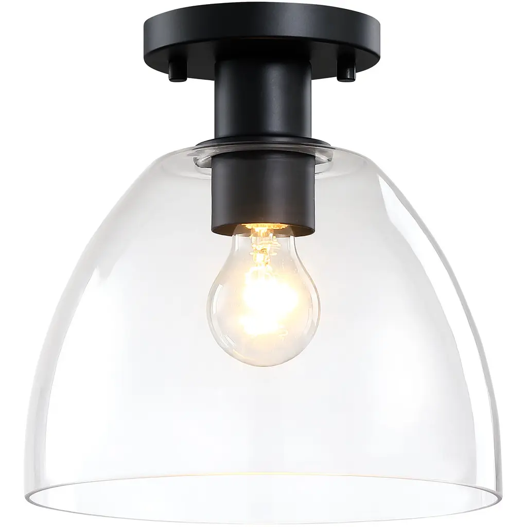 The Indigo semi-flush mount light offered by Designers Fountain provides a welcome approach to clean modern design, highlighted by a clear blown glass shade. Offered in both warm bushed gold and sleek matte black finishes, Indigo is sure to fit seamlessly in any interior. Designed for countless applications such as halls, bedrooms and entryways, use throughout the home anywhere you may need some accent lighting. Installation is a snap, with easy-to-follow instructions and all mounting and wiring hardware included.