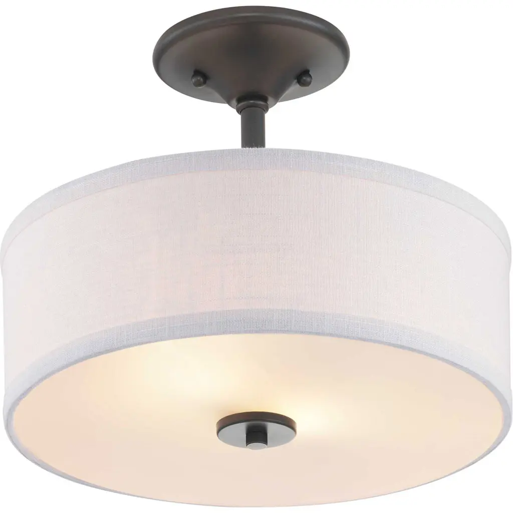 Harkening back to a simpler time, the Inspire Collection freshens traditional forms with flowing lines. The two-light semi-flush fixture features an etched glass diffuser with a summer linen shade finished with Graphite details. This fixture is suitable for a variety of design styles, including Modern, Traditional and Farmhouse and the simple design is a perfect complement to a variety of fixture collections.