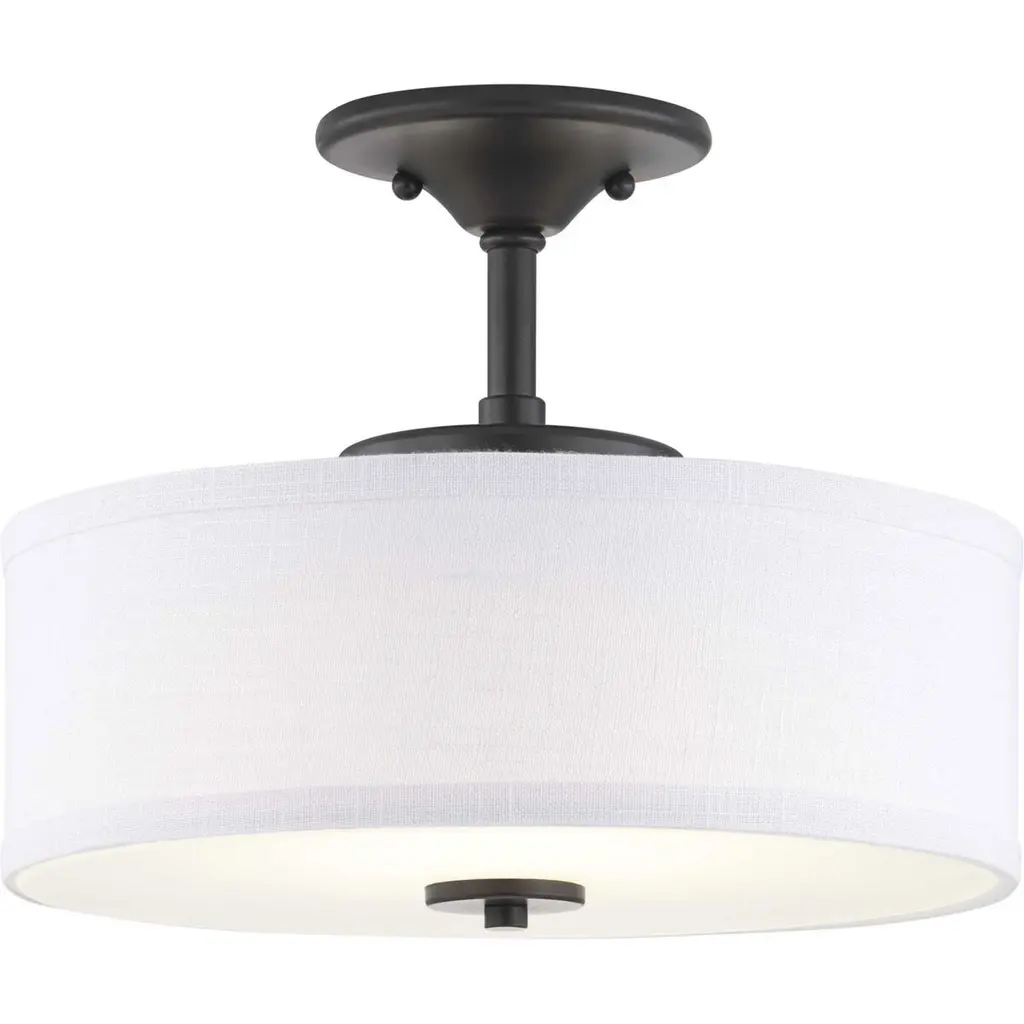 Harkening back to a simpler time, the Inspire Collection freshens traditional forms with flowing lines. The LED semi-flush fixture features an etched glass diffuser with a summer linen shade finished with Graphite details. This fixture is suitable for a variety of design styles, including Modern, Traditional and Farmhouse and the simple design is a perfect complement to a variety of fixture collections.