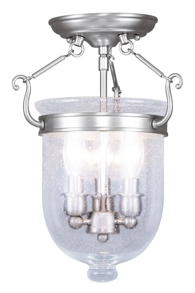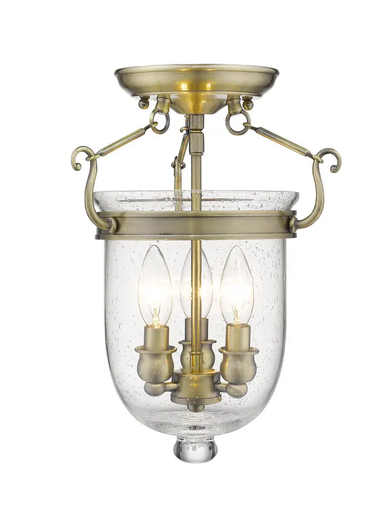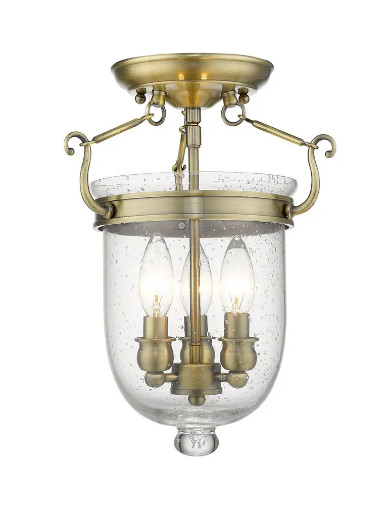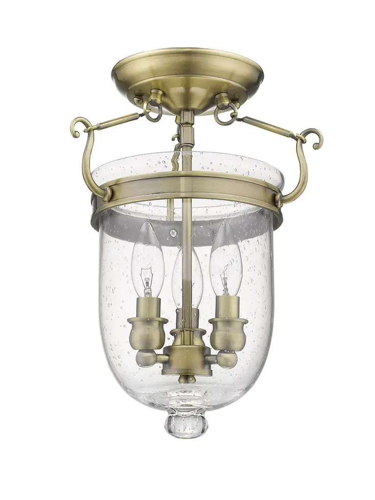 Jefferson 3 Light 10 Inch Antique Brass Semi-Flush Mount Ceiling Light