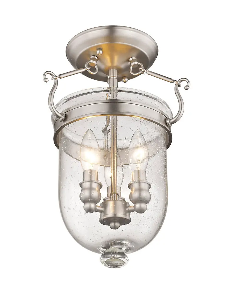 Jefferson 3 Light 10 Inch Brushed Nickel Semi-Flush Mount Ceiling Light