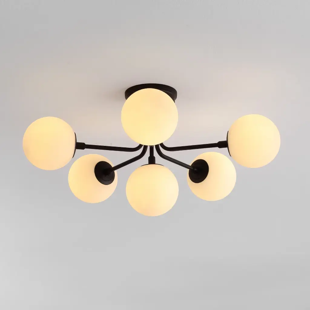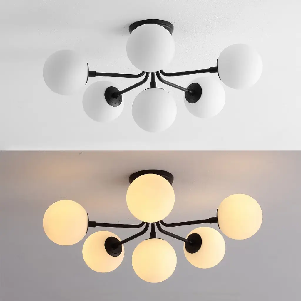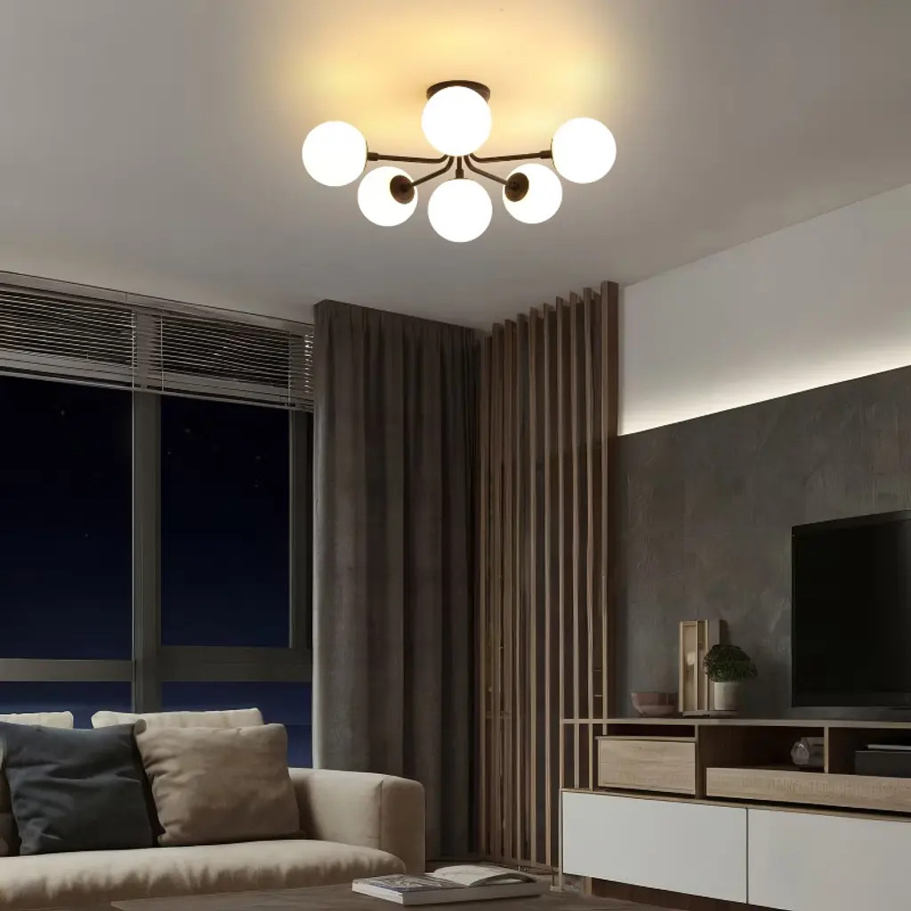 Bring on the mid-century Parisian flair with our classic bistro ceiling light. Six LED bulbs in frosted glass globes provide a warm, inviting glow, while clean lines and your choice of finishgold, black, almond, or whiteadd a touch of modern French bistro style. Perfect for elevating your dining room, living room, bedroom, or entry, this fixture blends timeless elegance with contemporary charm.