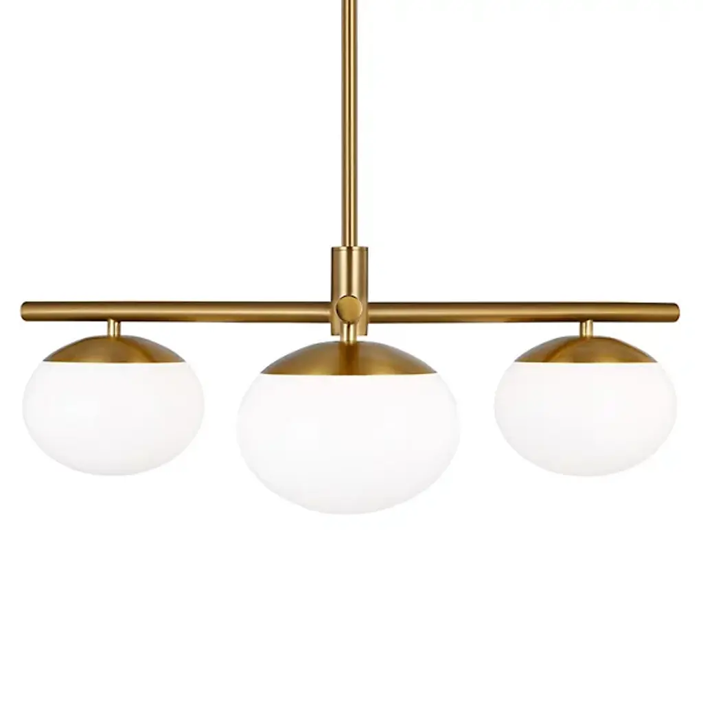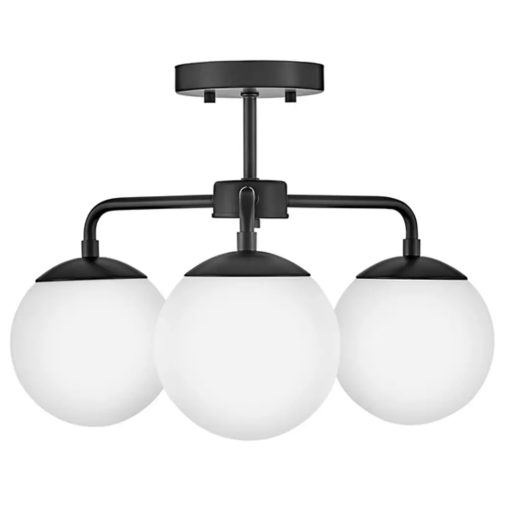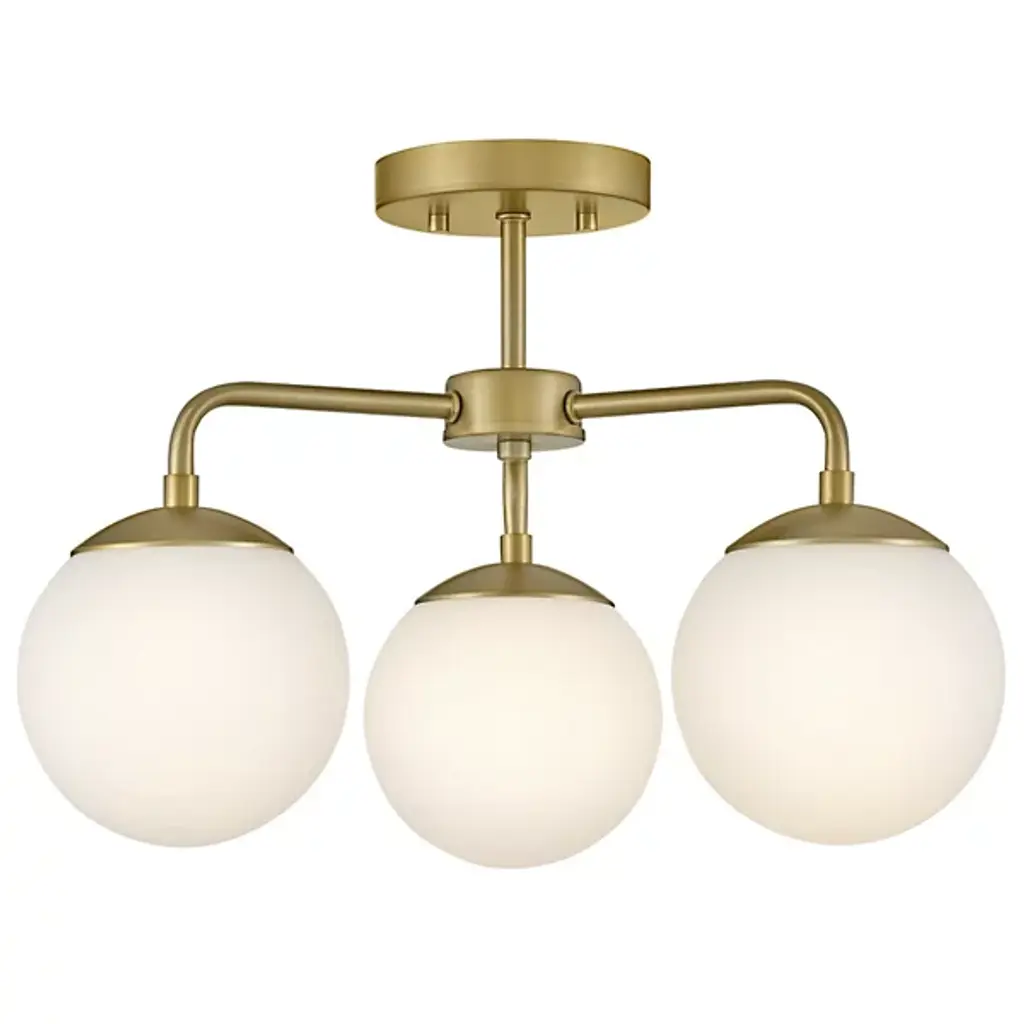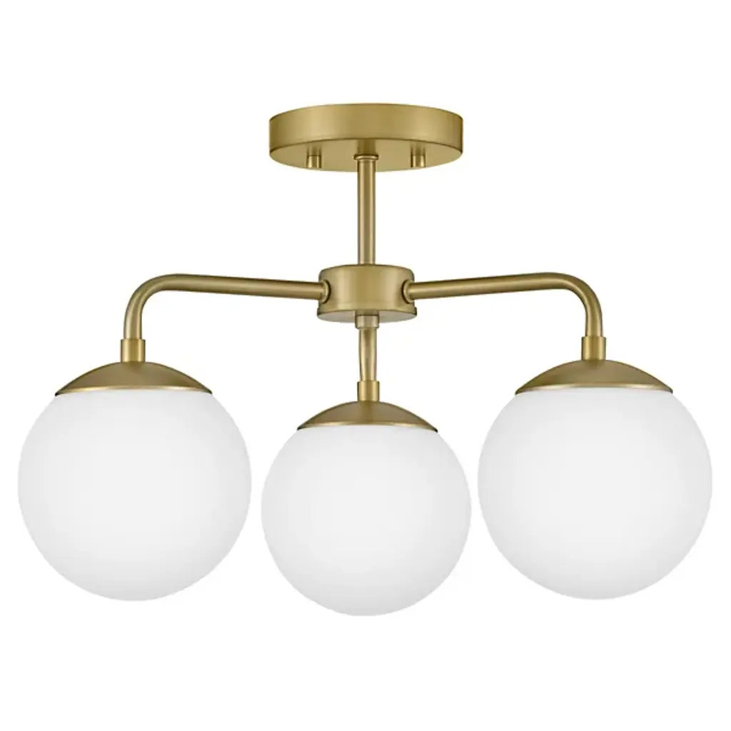 The Julep Semi-Flushmount from Lark welcomes one into the intimate or open space with familiar globes of pristine light. Elementary shapes and contrasting finishes underscore this mid-century-inspired piece. A short metal structure makes the piece easy to appreciate over the low-ceiling foyer or living space. This structure impresses with a triangulating setup of curving arms. Dish-shaped lamp holders top the always charming etched opal globes below. While on, these globes transform into radiant orbs for a spacious light.