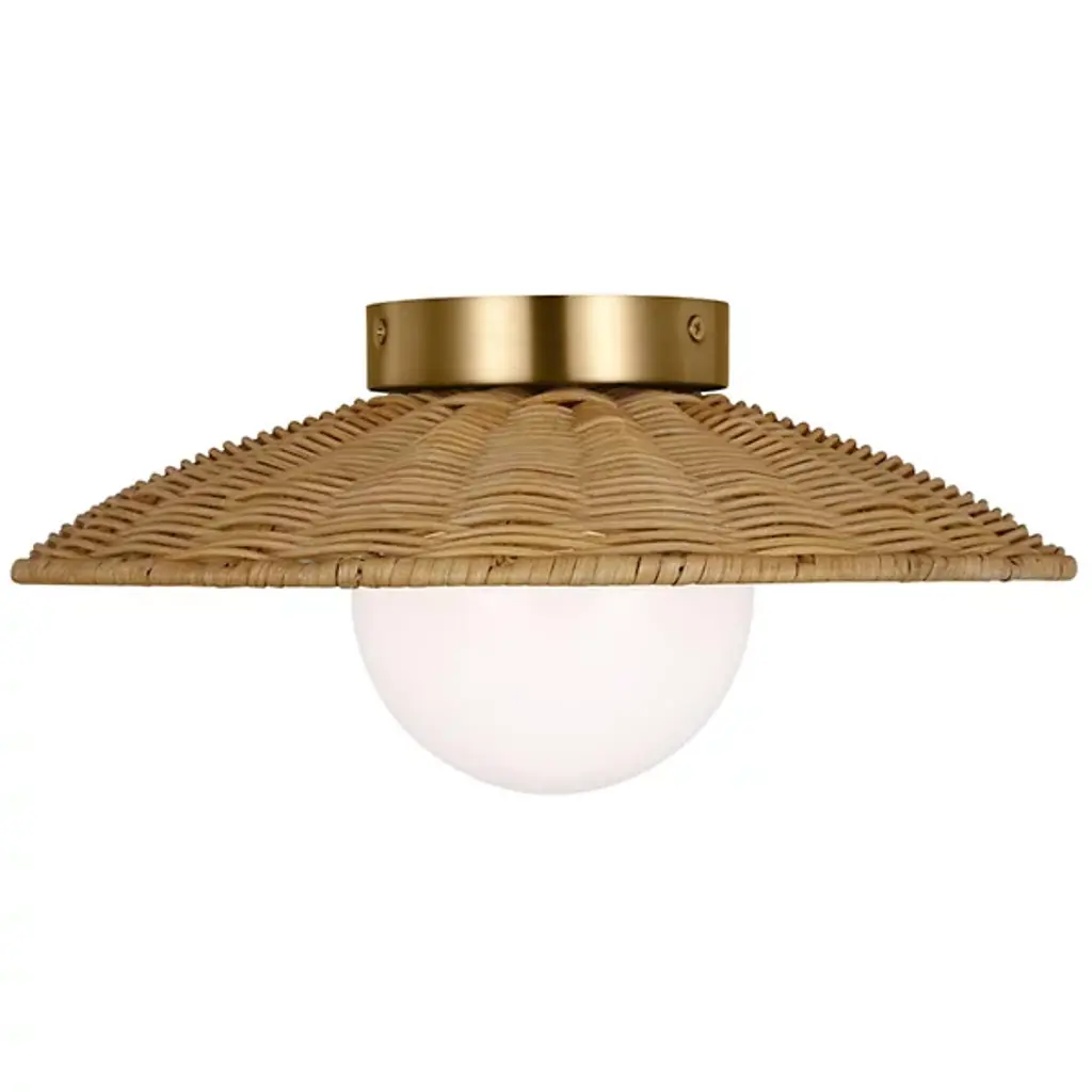 The Kai Semi-Flushmount from Alora Mood, designed by Hae Jung Roe, beautifully fuses organic texture with modern sophistication. Showcasing a handcrafted rattan shade and bold brushed gold accents, it adds warmth and visual interest to any room. Its adaptable design allows for installation as a pendant or semi-flushmount, making it ideal for kitchen islands, bedrooms, and more. It offers a striking yet natural aesthetic, perfectly balancing contemporary style with timeless, earthy charm.