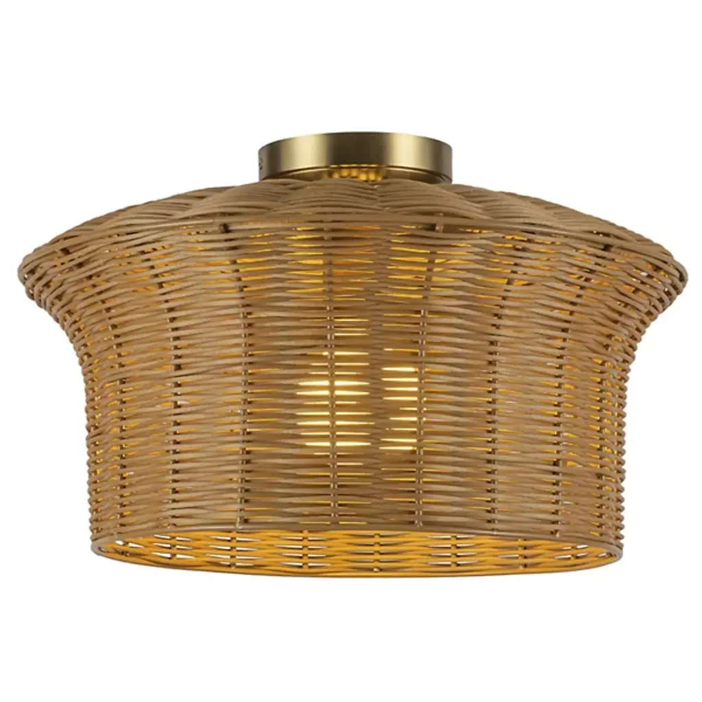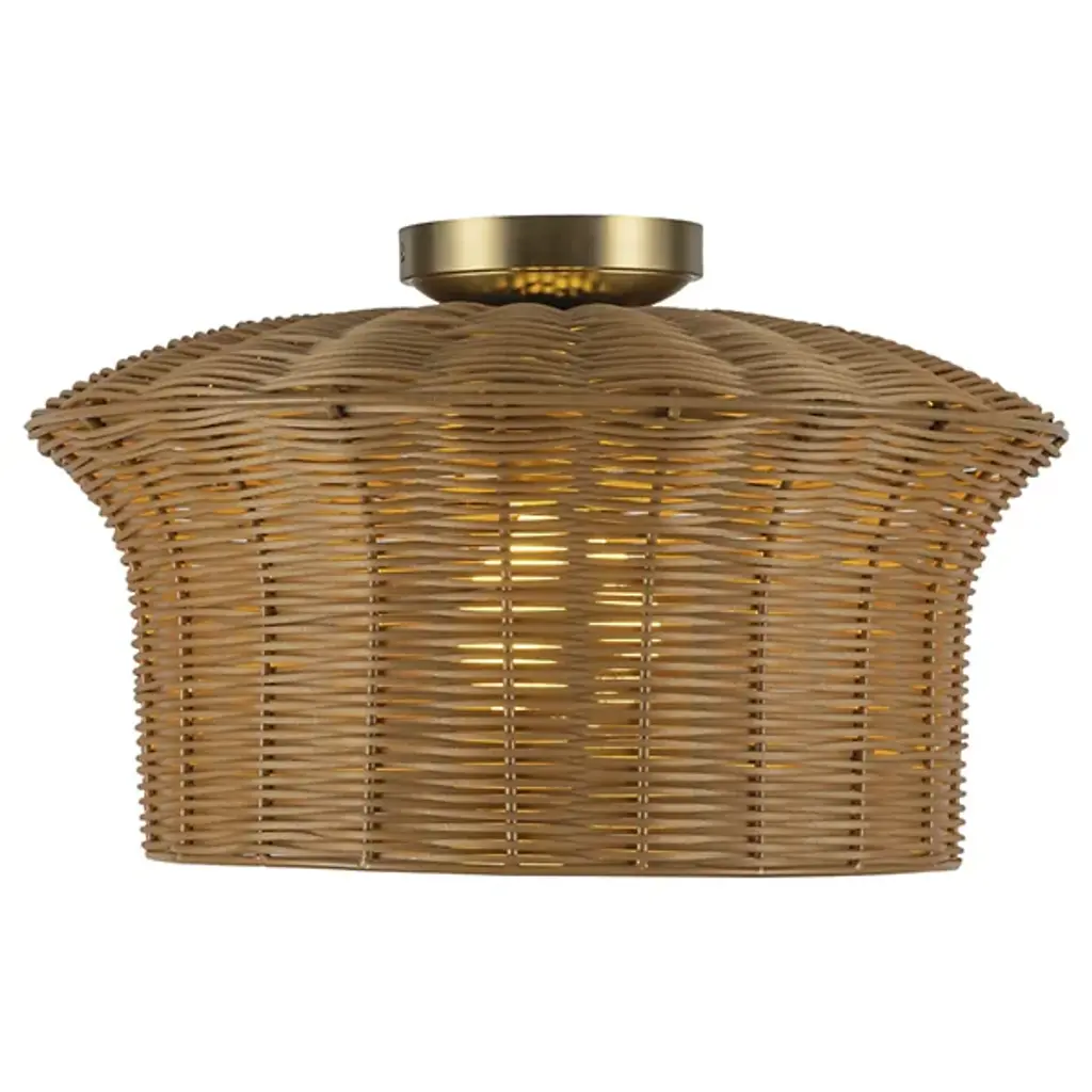 The Kai Semi-Flushmount from Alora Mood, designed by Hae Jung Roe, beautifully fuses organic texture with modern sophistication. Showcasing a handcrafted rattan shade and bold brushed gold accents, it adds warmth and visual interest to any room. Its adaptable design allows for installation as a pendant or semi-flushmount, making it ideal for kitchen islands, bedrooms, and more. It offers a striking yet natural aesthetic, perfectly balancing contemporary style with timeless, earthy charm.