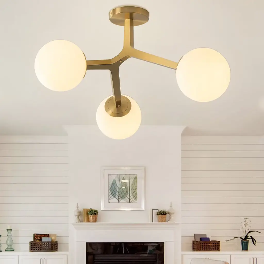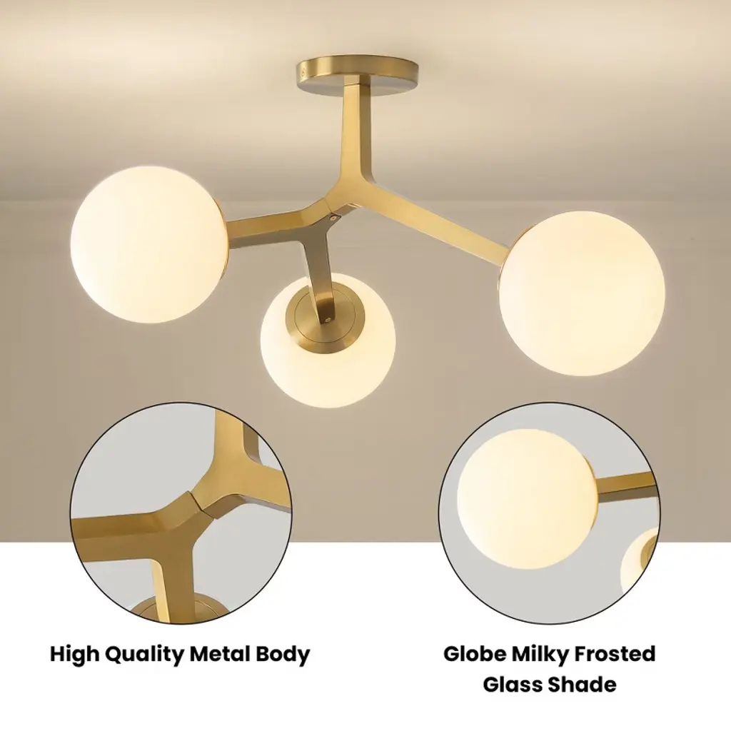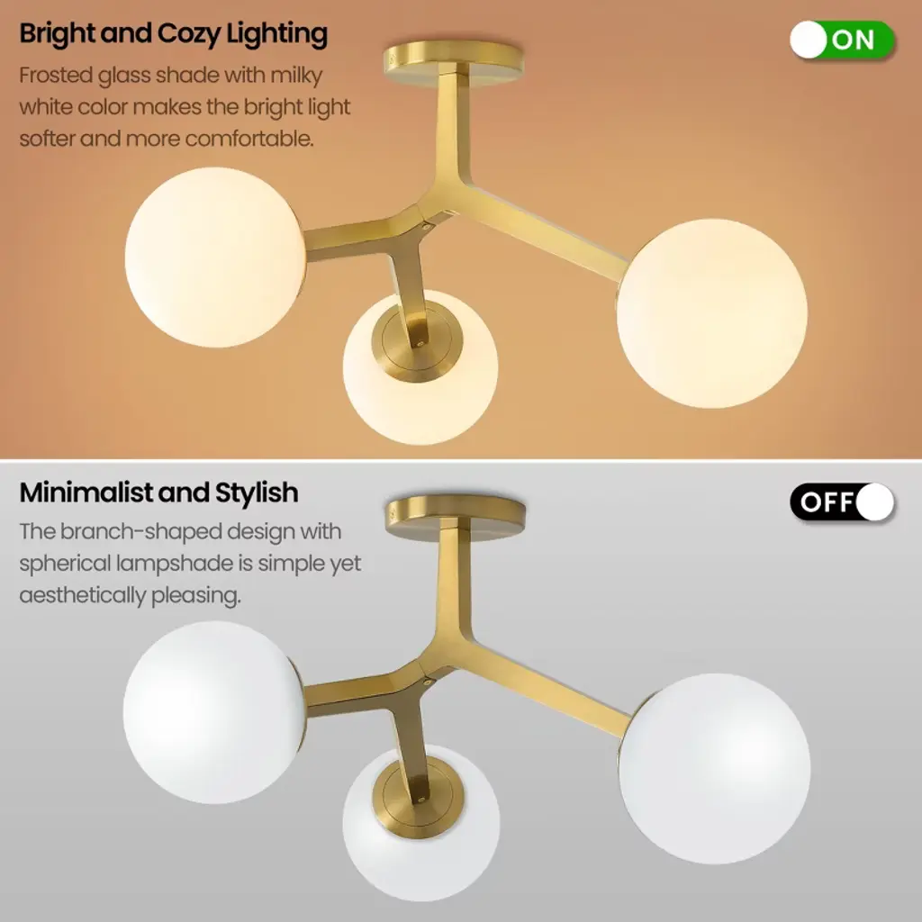 Brighten your living room, dining area or bedroom with the KAISITE Branch Design 3-Light Semi-Flush Mount Ceiling Light. Featuring three opal frosted glass globes and a branch-inspired metal frame, this ceiling light combines artistic style with functional illumination. Compatible with dimmable bulbs and dimmer switches, it offers flexible brightness control to create the right atmosphere for any occasion. The fixture requires hardwired installation and includes mounting hardware for quick and easy setup.