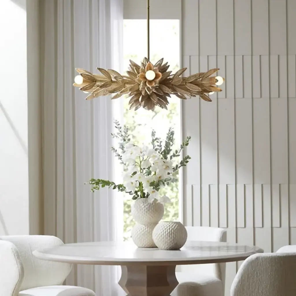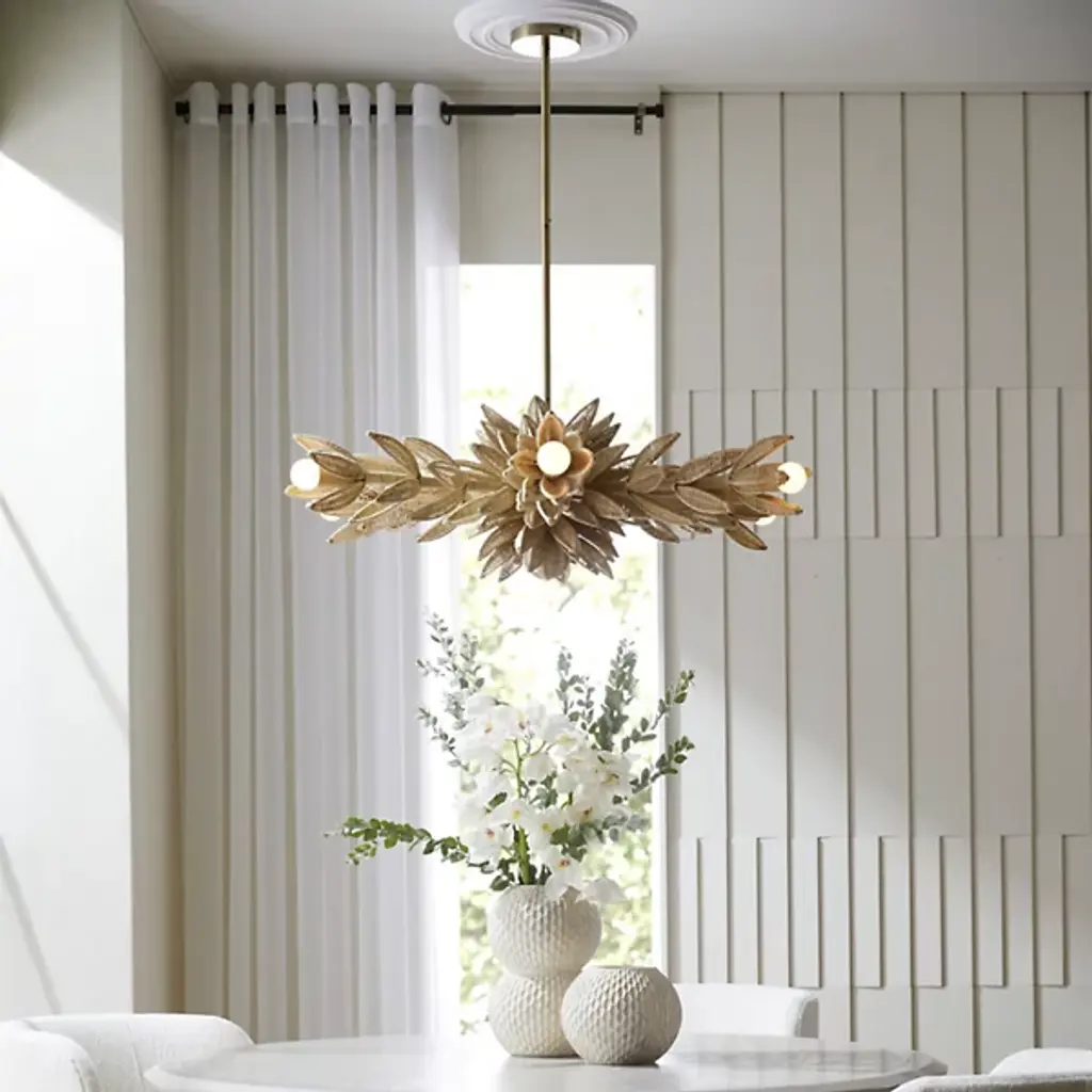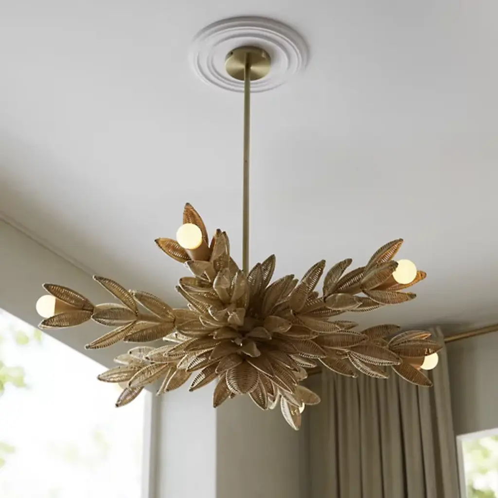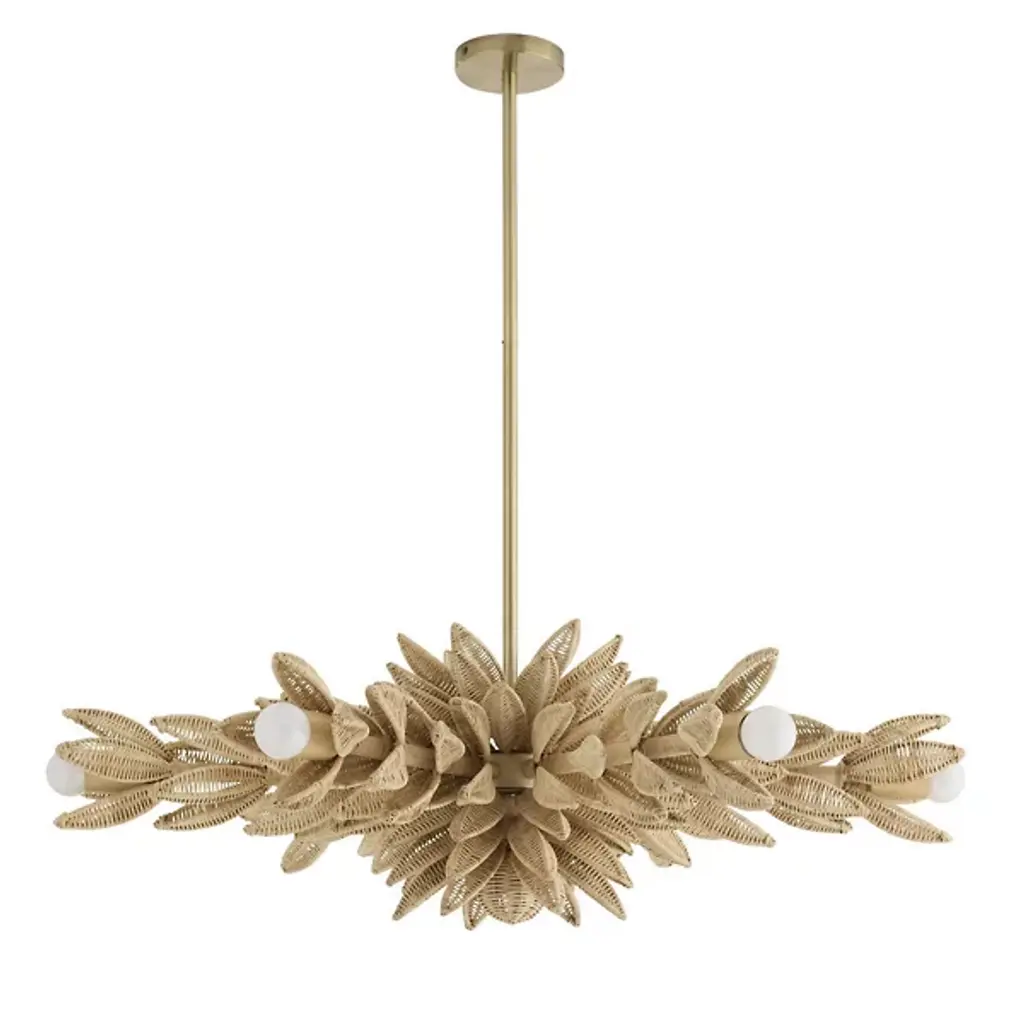 The Kasai Semi-Flushmount from Arteriors captures intricate botanical growth patterns through hand-woven natural rattan, where each leaf receives individual attention during the construction process. The layered design ensures a visual impact from every viewing angle, with organic textures that shift and overlap as light filters through. Kitchens, dining areas, and entryways benefit from its natural warmth and handcrafted character. This fixture provides practical illumination while enhancing interior environments with artistry that celebrates traditional weaving techniques. Rattan construction brings authentic material presence that softens modern spaces with earthy sophistication.