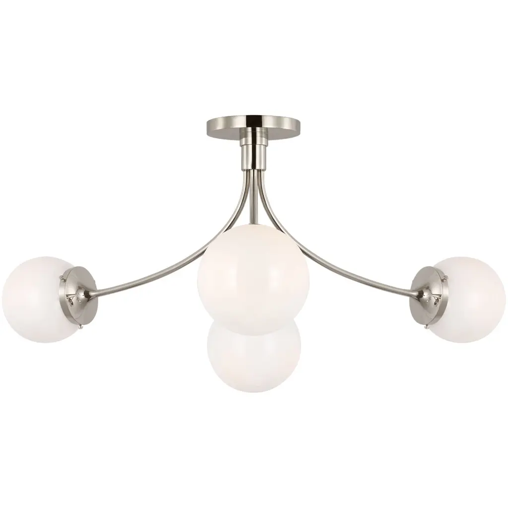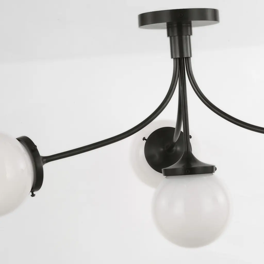 Prescott Large Semi-Flush Mount in Bronze with White Glass