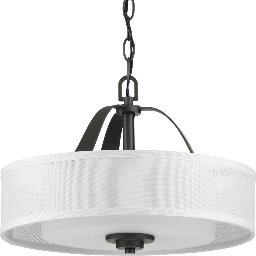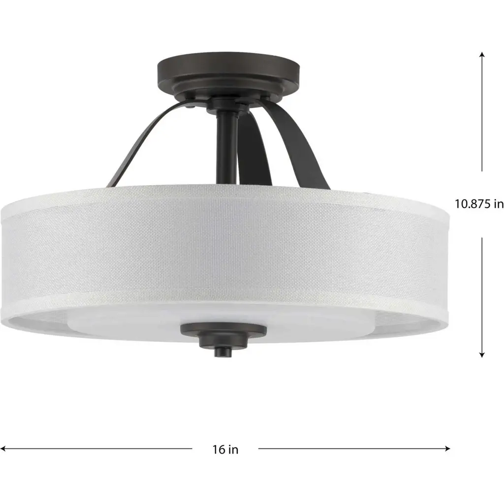 Add a modern romance to the heart of your home with this lovely semi-flush mount. A quiet linen shade fosters a soft, luxurious touch. The shade is held in place by beautiful graphite arms that flow down from a round ceiling plate.