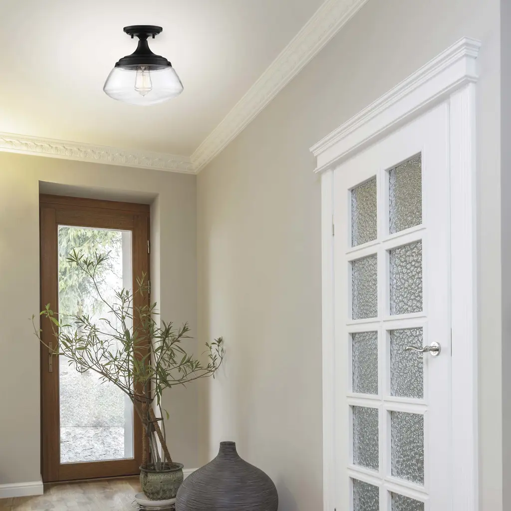 Kew 1 Light 10 Inch Aged Bronze And Clear Semi Flush Mount Ceiling Light