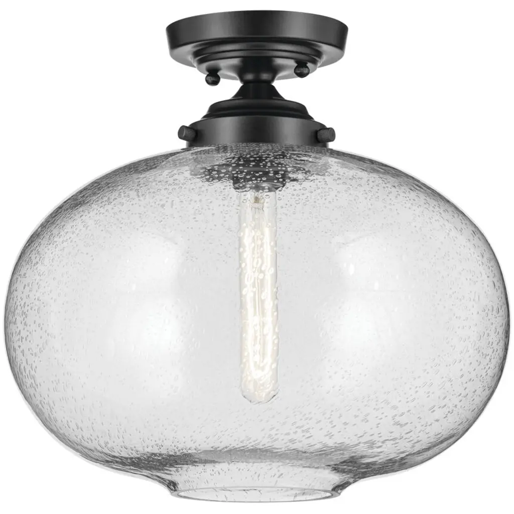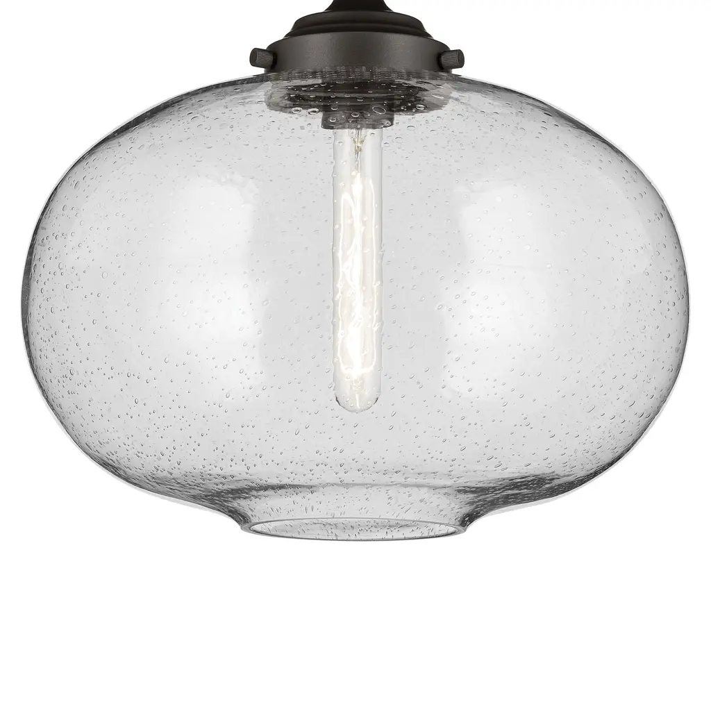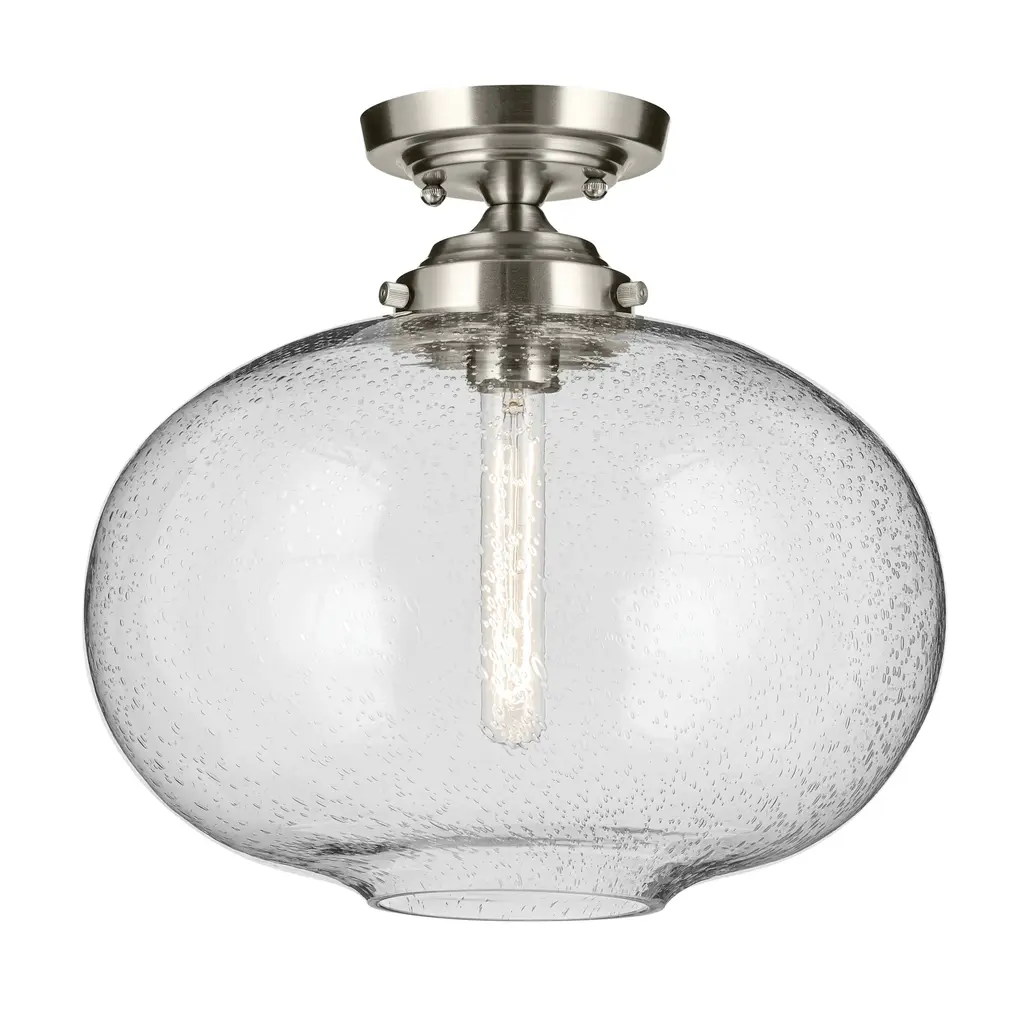 The Avery Collection offers multiple fixture options and sizes to fit various rooms and settings. Its unique seeded glass adds to its ambient glow and classic charm. Offering convenience and ease in coordinating with other lighting options, the Avery 1 Light Flush Mount is truly as versatile as it is beautiful. Avery's on-trend finish creates a classic yet dramatic statement to any space while it complements a variety of decor, including industrial aesthetics. Its clear seeded glass adds to its charm by providing a beautiful, ambient lighting to the entire room and is easy to remove for convenience and ease of cleaning and replacement.