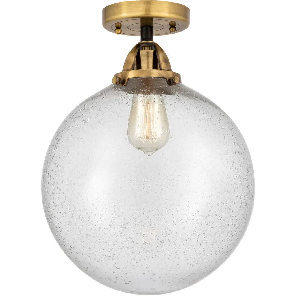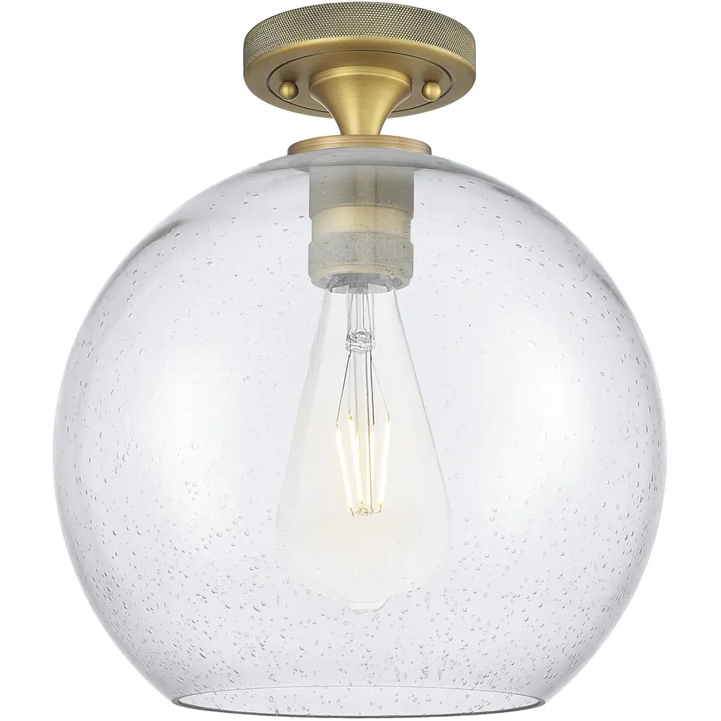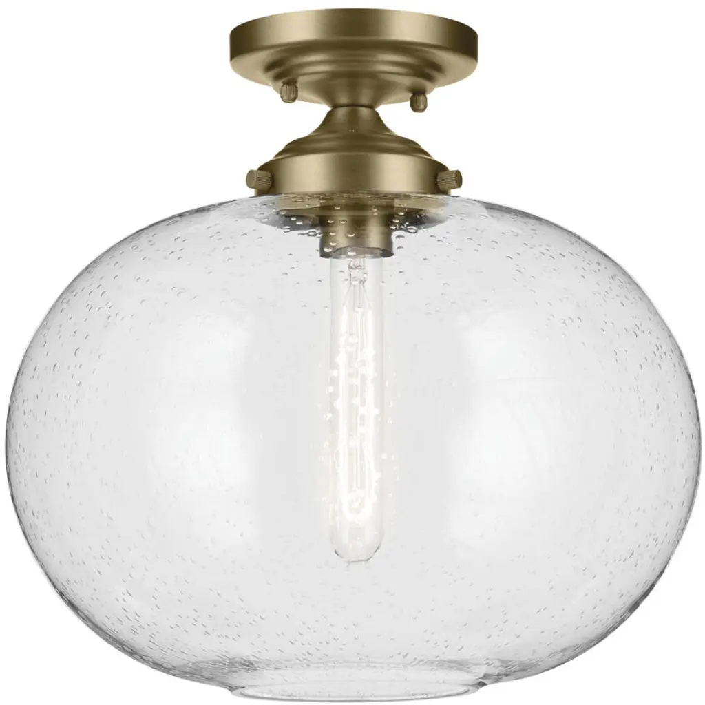 The Avery Collection offers multiple fixture options and sizes to fit various rooms and settings. Its unique seeded glass adds to its ambient glow and classic charm. Offering convenience and ease in coordinating with other lighting options, the Avery 1 Light Flush Mount is truly as versatile as it is beautiful. Avery's on-trend finish creates a classic yet dramatic statement to any space while it complements a variety of decor, including industrial aesthetics. Its clear seeded glass adds to its charm by providing a beautiful, ambient lighting to the entire room and is easy to remove for convenience and ease of cleaning and replacement.