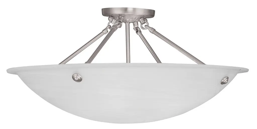 Three Light Semi Flush Mount from Olympia collection in Antique Pewter finish. Number of Bulbs 3. Max Wattage 100.00. No bulbs included. The Olympia Collection brings a modern twist on the classic aesthetic to create a new form the likes of which has not been seen before. The curvilinear, flowing arms create a clean, contemporary profile for your home. The Antique Pewter finish combined with Satin-etched white glass presents a natural color palate capable of matching any decor. For a simple approach, the Olympia Collection offers its unique look as an inspirational semi-flush ceiling fixture. It is a 3-light design that requires a 100-W Max bulbs to light the Satin-etched cased opal glass, creating glowing light with chic sophistication. Diameter 21in., height 11 1/2in. No UL Availability at this time.